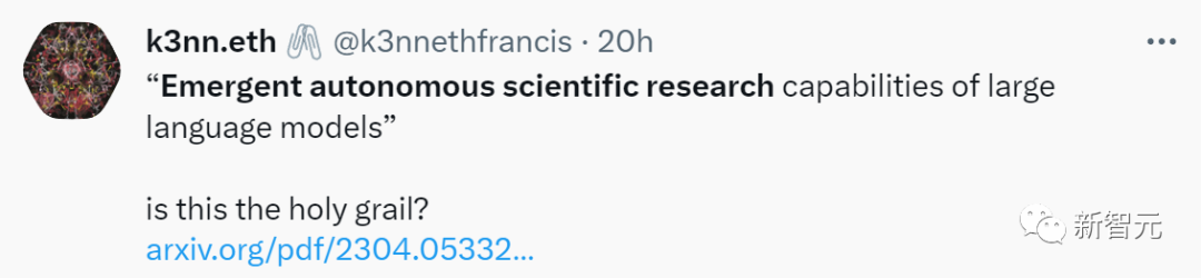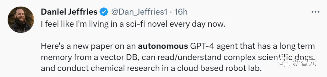 不得了,GPT-4都学会自己做科研了? 最近,卡耐基梅隆大学的几位科学家发表了一篇论文,同时炸翻了AI圈和化学圈。 他们做出了一个会自己做实验、自己搞科研的AI。这个AI由几个大语言模型组成,可以看作一个GPT-4代理智能体,科研能力爆表。 ![]() 因为它具有来自矢量数据库的长期记忆,可以阅读、理解复杂的科学文档,并在基于云的机器人实验室中进行化学研究。 网友震惊到失语:所以,这个是AI自己研究然后自己发表?天啊。 ![]() 还有人感慨道,「文生实验」(TTE)的时代要来了! ![]() 难道这就是传说中,化学界的AI圣杯? ![]() 最近大概很多人都觉得,我们每天都像生活在科幻小说中。 ![]() AI版绝命毒师来了?3月份,OpenAI发布了震撼全世界的大语言模型GPT-4。 这个地表最强LLM,能在SAT和BAR考试中得高分、通过LeetCode挑战、给一张图就能做对物理题,还看得懂表情包里的梗。 而技术报告里还提到,GPT-4还能解决化学问题。 这就启发了卡耐基梅隆化学系的几位学者,他们希望能开发出一个基于多个大语言模型的AI,让它自己设计实验、自己做实验。 ![]() 论文地址:https://arxiv.org/abs/2304.05332 而他们做出来的这个AI,果然6得不行! 它会自己上网查文献,会精确控制液体处理仪器,还会解决需要同时使用多个硬件模块、集成不同数据源的复杂问题。 有AI版绝命毒师那味儿了。 |