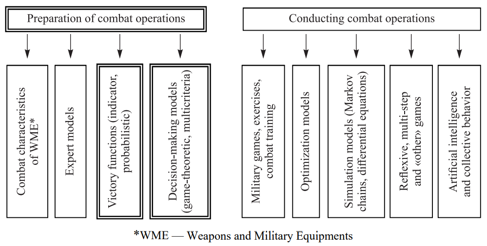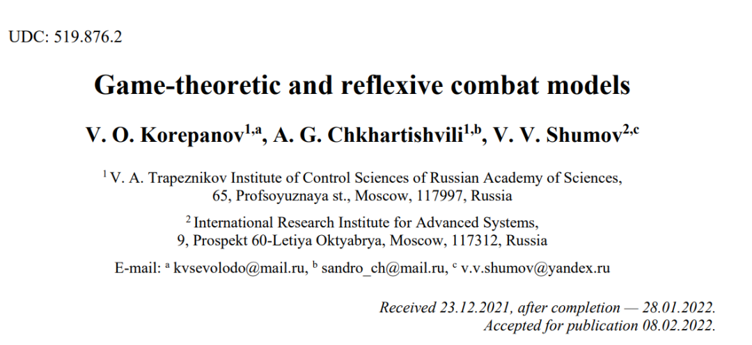 ![]() 战斗行动建模是一项紧迫的科学和实践任务,旨在为指挥官和总部提供决策的量化依据。作者根据G-塔洛克的冲突函数(function of conflict),并考虑到战斗(军事)行动的规模,提出了战斗和军事行动中的胜利函数(function of victory)。通过足够数量的军事统计数据,对尺度参数进行了评估,并为战术、战役和战略层面找到了其数值。研究了"进攻-防御"(offensive – defense)的博弈论模型,“进攻方”与“防御方”由一个或几个部队梯队组成,在博弈论模型中各方解决当前和随后的任务。在建模的第一阶段,找到了当前任务的解决方案--突破(守住)防御点,在第二阶段,找到了后续任务的解决方案--在防御纵深击败敌人(反攻和恢复防御)。在战术层面上,利用纳什均衡,根据三个标准为对抗性博弈中最接近的问题(双方力量在防御点的分布)找到了解决方案:a)突破最弱的点,b)至少突破一个点,c)加权平均概率。研究表明,在其他条件相同的情况下,进攻方最好使用 "至少突破一个点 "的标准,可以确保突破防御点的最大概率。在对特定情况进行建模的第二阶段(双方在突破和守住防御点时以突破最弱点的标准为指导),根据两个标准解决在战术任务(梯队)之间分配部队和设施的问题:a)突破防御点的概率和在纵深防御中击败敌人的概率最大化,b)概率的最小值最大化(保证结果的标准)。感知是作战行动的一个重要方面。考虑了反射性博弈(以复杂的相互认识为特征的博弈)和信息管理的几个例子。它显示了在什么条件下信息控制会增加参与者的回报,并找到了最佳信息控制。【关键词】数学模型、战斗、进攻、防御、胜利函数、博弈论模型、反射性和信息控制 1 引言对部队的控制是指挥官、总部和其他指挥和控制机构为保持部队的战备和战斗力、为战斗做准备并指导他们执行指定任务而进行的有目的的活动[Taktika, 1987]。部队指挥与控制的两个主要阶段(战备和执行战斗行动)可以用一套模型表示,其分类见图1。 ![]() 图1:战斗行动分类模型