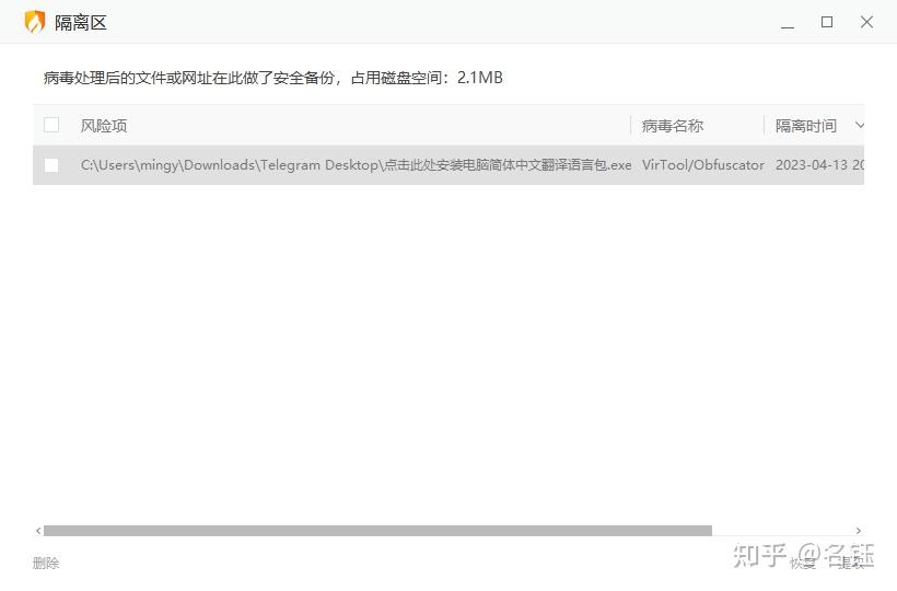本着没有证据不轻易下结论的宗旨,我在这个网站下载了所谓的Telegram官方中文版,然后安装试运行了下,这个软件是用.msi方式进行的,处于安全原因没敢登录账号,紧接着删掉了安装的文件,然后用360系统急救箱[2]扫了一下,它果然是个不正经的安装包。