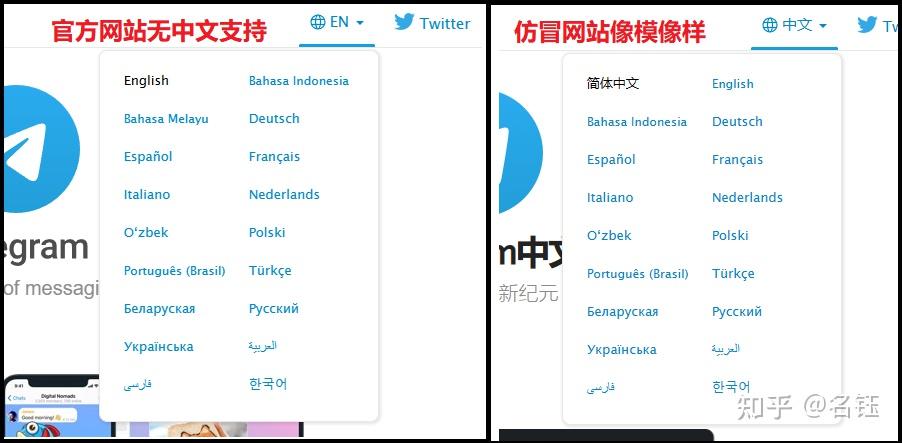 接着我又去看了其他”Telegram中文官网“,发现又仿的像的,也有不太一样的,下面放图。
