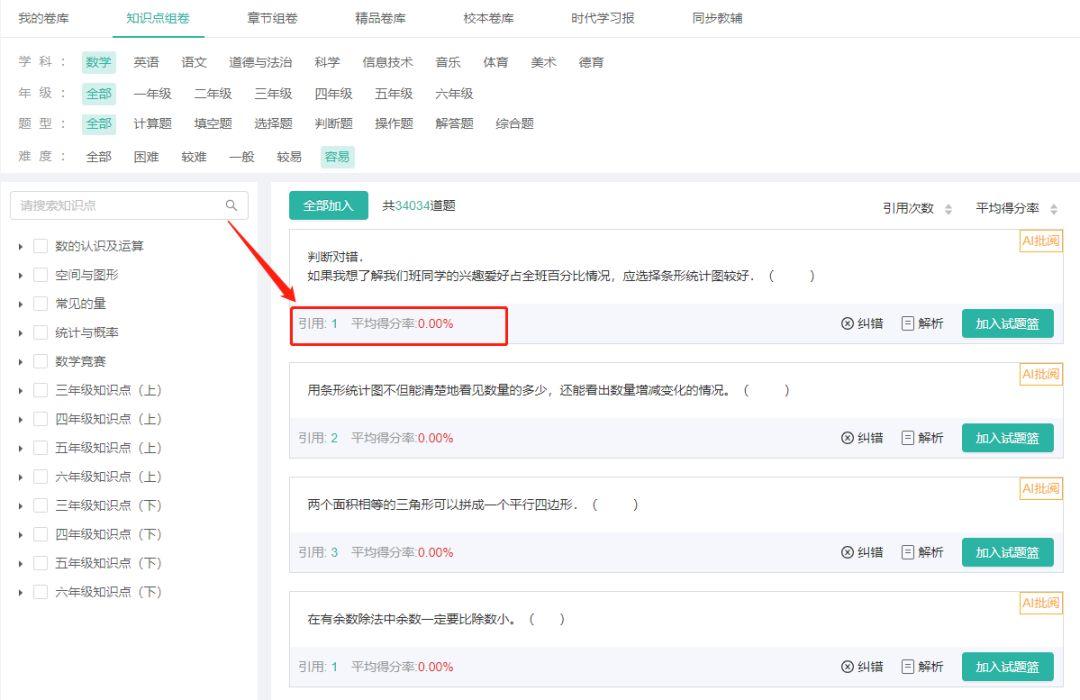 强大的高科技,让自动批改更细致、更多维、更精准,真正成为教师得力批阅助手。 AI数据驱动,让组卷更精准除自动批阅外,翌学教育研发的平台选题组卷也让众多教师爱不释手。教师只需轻松勾选班级、考察的知识点或难易程度等,即可轻松出一份学生练习题。 教师每一次操作行为等同于对智能推荐结果的一次评价反馈,系统自动记录教师操作,结合教师行为量化及指标确定、教师行为分析方法等,调整下一次推荐策略。如:根据教师浏览、搜索、选用题目,增加同类型题目的下一次推荐;根据教师删除、替换题目,减少同类型题目的下一次推荐;根据教师调整题目顺序、修改分值,调整下一次推荐的试卷结构等。