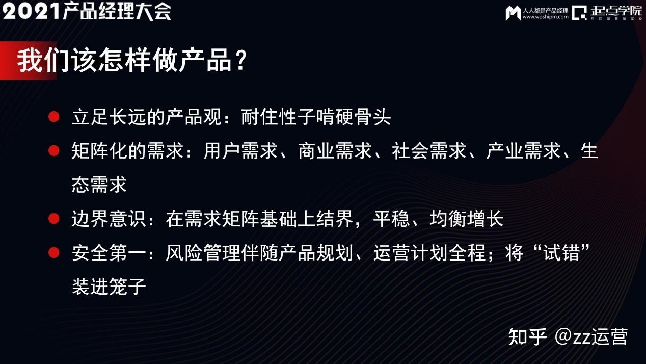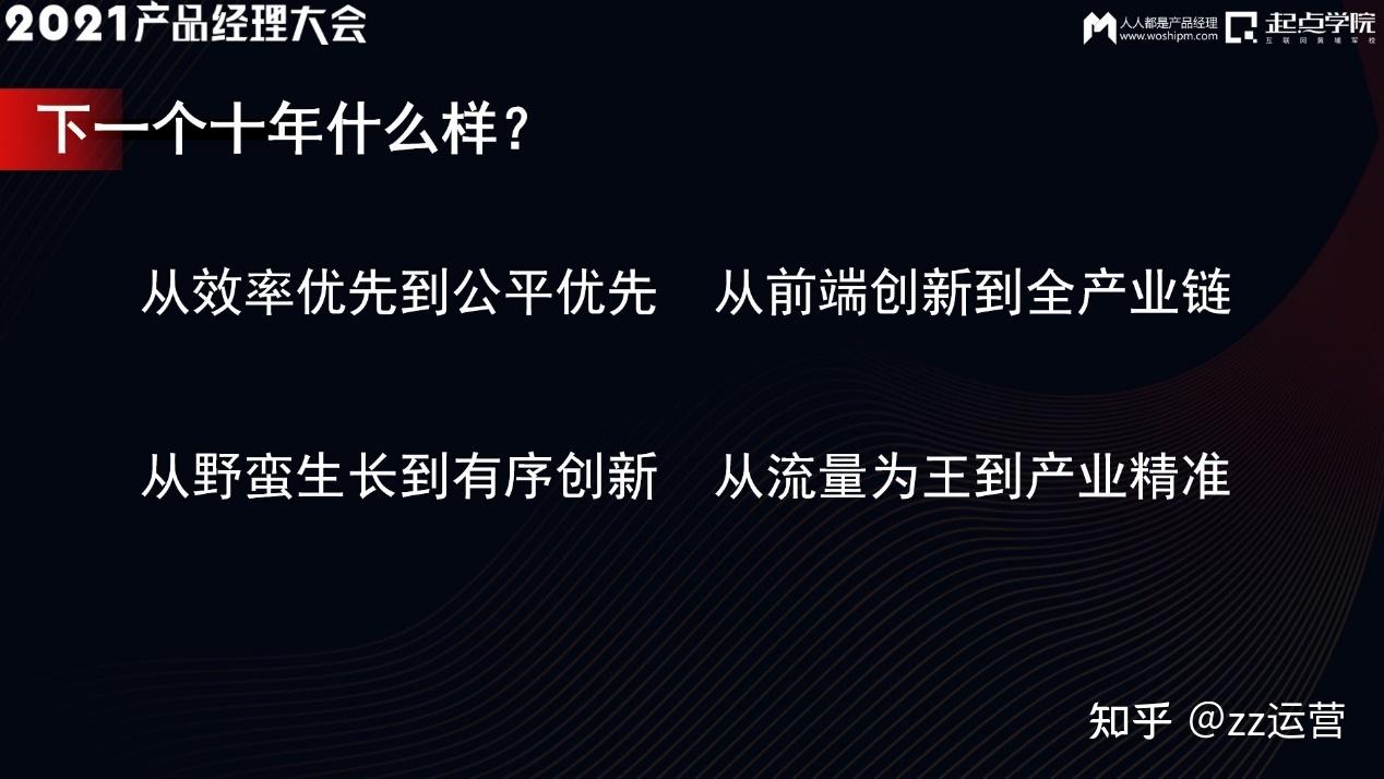 两要素:看数据、盯细节,这些产品经理必备的要素此处不展开讲。 在上个时代,我们遵循的核心理念,就是“天下武功,唯快不破”。所有的产品经理都在和时间赛跑、和竞争对手打,往前扑,并引领用户向前跑。这是上一代,或者距离现在不久前我们相信的东西。但是,时代终会改变。 这些干货知识,都是包含在互联网营销师的课程中,除了短视频运营,还有直播销售、选品、平台管理等专业知识课程,想要转行、创业、兼职、全职的同学,都可以了解一下。 毕竟大背景下,线上营销是趋势。 互联网营销师是时代的发展和疫情影响下诞生的新职业,人社发布、含金量高、入门容易、0基础满18周岁都可以学习,前景好突破收入天花板,还有兼职、全职、就业推荐。 我推荐中思智数,官方授权的互联网营销师考证机构,资质正规、课程丰富、通过率高,1v1服务贴心,还有线上兼职工作和就业推荐服务!!!可以直接点击下方名片,添加助教咨询考证详情哦,他们家还有线上兼职工作机会提供: 二、下一个十年什么样?![]() 1. 从效率优先到公平优先以前我们只讲一件事——“发展是硬道理”,所以仅一个指标,即增长的数字,映射到社会便是用户的增长。 但是,当初的互联网是一个初生的婴儿,还在野蛮生长。我们不了解互联网是什么样的,所以我们要看一看所谓的“放水养鱼”。 而到今天,盲目的增长带来了很多社会问题。更为重要的是,以前的互联网是一个小孩子,只是赶个时髦,甚至作为社会的一个补充而已。但是当其成为社会基础设施的时候,其一举一动便影响着社会的方方面面,所以不管不行。 因此效率之外必须要考虑公平。包括之前的事情,难道不就是约束互联网公司、将其引到公平的轨道上去吗? 所以,未来的产品经理,只会拿KPI说事儿是不行的。仅仅追求一个数字则过于简单,但若追求整体均衡,又不是一件容易的事情。 2. 从野蛮生长到有序创新我们创新在哪些方面?运营、产品。我们的根基,从底层的系统到架构,甚至我们用的语言,这些都需要进行有序创新。 3. 从前端创新到全产业链在中美对抗大环境下,国家、企业都要考虑到自身的安全问题。举一个简单的例子:以前我们做硬件,不会考虑到供应链端的芯片问题。现在作为一个企业、一个产品经理,做产品时,哪怕你不去做全产业链创新,你也要考虑到全产业链。 4. 从流量为王到产业精准所谓的“流量为王”,是基于信息匮乏的时代而言,用户上互联网的核心是获取信息。但是现在信息高速增长、信息过载,用户上互联网是有目的的,其目的主要是筛选信息,所以必须要做到精准。 三、哪些是不变的?![]() 1. 互联网思维与平台经济依然有效1)互联网思维 互联网思维在今天依然非常有效,而且具有很强的优势。在我看来,所谓互联网思维是保证推动新信息对称,保障公平与效率的用户思维。 以前的用户思维都是从商家角度出发、从资本提供者的角度出发。实际上,人类历史上第一次从用户的角度考虑问题的商业思维就是互联网思维。而且互联网思维同时具备推动效率、推动公平的两大能力。 2)平台经济 国家把平台打压得很厉害,似乎要置它们于死地。但是我不这么认为。 为什么?何谓平台? 我个人的理解:平台,是规则、系统、标准、体系的集合。 平台的存在,让一个行业有了基本的运作机制,有了基础的操作平台和操作系统。平台是成本最为低廉的、最有助于公平、创业的一个基础能力。 现在对竞争的一些遏制,是平台运营者在运营设计过程中出现了一些问题,比如对隐私保护、安全,包括没有照顾到生态链末端等问题。只要保持改进,就可以取得好的结果。 2. 唯一不变的是变化当然,我们无法去逃避,未来黑天鹅事件将成为常态。唯一不变的是变化,这是最大的不变。我们要把这些变化、应变,成为产品经理基因里的东西。 3. 追求极致、不懈创新依然有效我们习惯了野蛮生长,伴生的条条框框不一定是坏事,它并没有阻拦创新。这个时代追求极致,不懈创新依然有效。极致是什么,是你极致地解决了用户的问题,将问题解决得透彻,这才是核心。 四、我们该怎样做产品?我们一天到晚被需求赶着跑,这是常态。但是未来十年一定会有所变化。产品经理所拥有的周期会变长,但任务也会更刚、更硬。要做好产品,需要做好以下几点。 ![]() 1)立足长远的产品观 产品经理要耐下性子做产品,不能急于求成,要有韧性、立足长远。 2)矩阵化的需求 产品的核心是不可见的需求,及格的产品经理把用户需求想明白,良好的产品经理把商业需求想明白,优秀的产品经理把社会需求想明白。在未来,每一个产品经理都需要构想一个矩阵化的需求。 3)边界意识 知道不该做什么,还要定义好用户增长。什么是高质量的用户增长?就是理解你的产品,你的产品提供产品的能力与其需求相吻合,并对其产生价值的用户,才是高质量用户。他们的增长,才是高质量的用户增长。 4)安全第一 我们面对的环境太过复杂,未来产品经理进行产品规划的全程中必须伴随风险管理。产品经理要通过学习,对风险有一个深刻的认识,要具备风险意识。 五、我们该怎样做产品经理![]() 1. 对自我的认知要提升在未来,产品经理在企业的位置会提升,这是一把双刃剑。原来产品经理主要和企业KPI有关,哪怕会有一个憋闷之处——你做的产品提升了公司的业绩,但是运