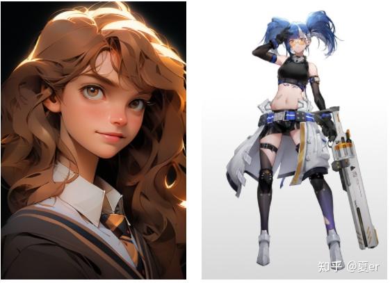 ![]() 今天我们来尝试下使用Niji V5创建一个角色,角色设定为: 哈利波特赫敏 + 轻科幻风格,二次元角色 根据要求,我们需要2个部分的参考,【赫敏】【轻科幻风格】 【赫敏】 下面是我用Niji V5的expressive style生成的一张赫敏: ![]() anime character illustration, Hermione Granger from Harry Porter 【轻科幻风格】 最近比较多轻科幻风格出来了,在花瓣选了一张【腹黑正太】大大的作品:【花瓣原图的链接我链接到图上了,喜欢大大的小伙伴可以点过去看原图,另外如果有侵权,请友好通知我哇,马上删帖!】 https://huaban.com/user/hulongjian1![]() ![]() 【腹黑正太】花瓣 因为有关赫敏的参考是比较多的,所以Niji还是能够很好的把握赫敏的特征,现在我们要做的主要就是将轻科幻这个元素融入进去。 接下来我们将这张轻科幻的原图给Niji bot读取下: ![]() 这一步还不会很好操作和明白的小伙伴们欢迎参考: Niji 5 - 最强二次元AI绘画? Niji-journey 有哪些风格的可以炫~ 得到的4个prompt,我们虽然也可以一个一个的尝试,但是这里我们并不是要画这一风格的任意图,我们需要将赫敏的部分融入进去,所以这里需要手动改写prompt: 1. a character with blue hair and a gun, in the style of dark azure and white, wetcore --ar 93:134 下面是我根据Niji读取到的读片信息,然后加入了赫敏的部分改写的prompt: Full body anime character illustration, Hermione Granger from Harry Porter, art style in the Tower of Fantasy, in the style of futurist mechanical precision, akihiko yoshida, magali villeneuve, HD, detailed, mechanized forms, kawacy, weathercore, automatism, cut/ripped, high resolution --ar 93:134 加粗部分是使用的Niji给出的风格提示部分。 接下来我们将下面这两张图的链接都放进去,然后加上上面这段prompt: ![]() so, 我们就得到下面的图: ![]() 到这里,虽然效果是出来了一些,但是人物设计方面还不是很满意,于是我修改了prompt,去掉了里面的illustration,这个词有的时候会为角色增加不必要的背景,从而导致角色的细节或是颜色上被分走一些权重: ![]() 然而,我这里想要一个全身的角色,生成的图都不是全身的。 方法一: 尝试调整prompt: 在现有的prompt里面添加:full_body standing character, sci-fi boots, ![]() 效果稍好,但是还没有达到预期效果。 方法二: 尝试修改权重: 在现有的prompt中找到full body,在后面添加 ::2 的权重: ![]() 效果并不是很理想┭┮﹏┭┮ 方法三: 尝试去掉赫敏那张参考图,因为赫敏那张不是全身,如果放上去,会有很大概览生成不是全身的图: ![]() 但是这样做就会丢失掉一些赫敏的特征,比如红色的头发,那就还可以继续调整。 关于红色头发这里有一个小的Tips: 我使用过三个形容红色的词,他们的作用大致可以总结为: