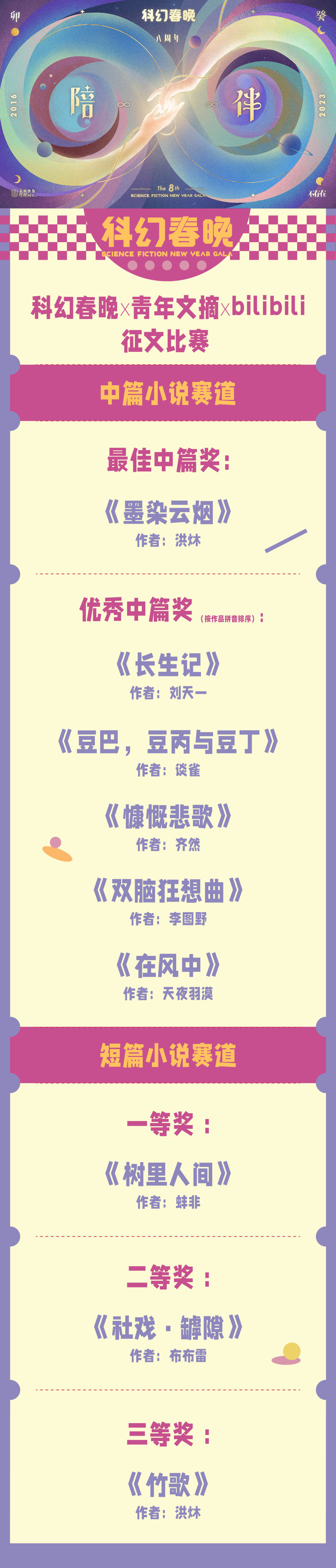 恭喜各位获奖者! 随着征文比赛落幕,2023年科幻春晚的全部活动圆满收官。