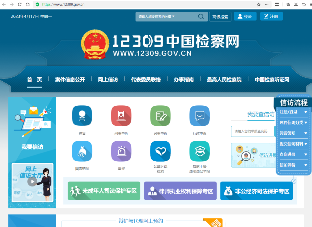 01 登录12309中国检察网 打开电脑浏览器,输入https://www.12309.gov.cn/进入12309中国检察网