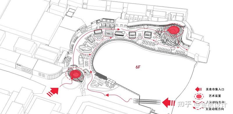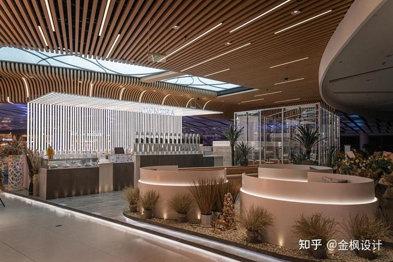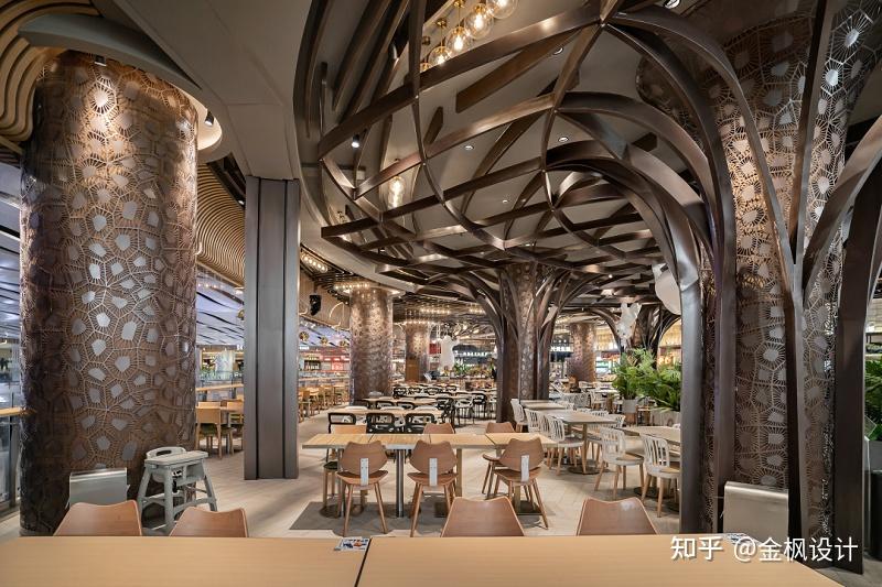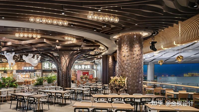 民以食为天,作为美食大国,人们表达热情友好的方式就是“约饭”,大家在饕餮之中增进了解。以前是家宴、餐馆承担了这一空间功能。如今美食广场商业形态快速发展,为人们提供丰富多彩的“第三空间”。 空间是活动的载体,美食广场内外空间设计至关重要。在市场竞争日趋激烈的今天,人们早已厌倦了千篇一律的美食城设计,追求更高层次的餐饮空间体验。 ![]() 美食广场街区做得好不好?直接影响到商业体的人气热度。很多百货大楼、商业体都在重新审视美食广场的设计规划,借助现代餐饮理念,高端定制图纸改造方案,通过打造高人气街区集市,让整座建筑体焕发新机! 沈阳万象城食通天美食集市就是一个美食广场设计改造的成功案例,全新打造空间设计引爆着沈阳市民的舌尖狂潮! ![]() 项目名称:沈阳万象城|食通天美食市集 项目面积:2900㎡ 项目地点:辽宁·沈阳 设计单位:金枫设计 沈阳万象城地处沈阳市中心核心位置,自2011年开业以来,成为沈阳乃至整个东北地区的高端商业场所,无数人在这里购物、休闲、餐饮。历经10年变化,原来的美食广场空间设计已不适应新时代需要,空间格局需要重塑。 经过充分推敲,武汉金枫设计提出的“浑河夏集”主题设计方案得到了品牌方认可,并将设计图纸付诸工程施工。如今,沈阳万象城食通天美食街区已成为年轻人最喜爱的美食打卡地之一! ![]() ①线条——“浑河夏集”的构思 浑河古称沈水,因沈水之阳而得名沈阳,流淌的浑河水滋养了一代又一代的沈阳人。 食通天美食集市位于沈阳万象城6楼,围绕冰场形成一个C型的带状空间,金枫设计师们从蜿蜒穿城而过的浑河得到启发,以树与河的意境,打造一个如夏日般热闹的美食集市。 金枫设计师们用勾勒出如浑河水一般灵动的线条,以入口景点和天井景观为核心,以独立店和岛铺,中间通道为主要动线,冰场周边通道为次动线,在各岛铺之间灵活穿插,营造丰富灵活的空间感受。 ![]() ![]() ②造型——餐饮休闲打卡点 ![]() 入口处即是“天空之树”艺术金属造型,“天空之树”由金属编制而成,中央模拟天光的设计,以“河马”为生命代表的动物艺术造型,寄托了对生命和阳光的美好向往。“天空之树”从幻想中走来,扎根于现实的大理石,在沈阳万象城里茁壮长大。 ![]() 顶面流水型的顶面造型,一个个闪亮的灯泡点缀其中,如同水面荡漾泛起的点点水泡。所有的柱子都被仿真效果的大树造型包裹,每一个基本形状都有14根放射状的金属线条组成,这种参天大树的造型设计,视觉冲击感强,迅速抓住食客们的好奇心。 ![]() 俗话说“三木成林”,金属编织的树木从柱子代表的树干茁壮的像着天井上方生长,既是生命对阳光的向往,也寓意着商家生意欣欣向荣的美好愿望。攀附于树枝之上的大猩猩又为空间带来了活力与趣味。 ③体验——空间重构,食不厌倦 在现代语境下,设计师对”集市“概念进行了重构,为场景赋能,消费者角色转变为参与者,从而获得一种正向的、积极的心理体验。 举个例子,烧烤区的空间设计非常开阔,木纹饰面餐桌、灰胡桃色地板、镀铬色不锈钢吊顶、加之柔和的灯光设计,为食客打造愉悦的用餐空间。茶饮空间设计主打慢情调,造多个的半开放圆形空间,将个性化、场景化消费与设计相结合,惬意非凡! ![]() ![]() 2023年,中国经济全面复苏,商业餐饮投资信心重振,很多美食广场街区迎来了焕新升级,多彩缤纷的视觉色彩、张力十足的造型线条、开朗大气的空间格局、舒适通透的餐区设计等等,全方位提升食客享受。 “让空间创造生产力”是金枫设计师们匠心不变的理念,好的美食广场设计就是让食客舒心,让商家方便经营,让建筑生机勃勃! |