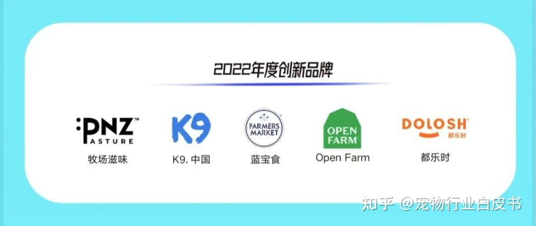今年获得2022年度“创新品牌”奖项的有牧场滋味、K9.中国、蓝宝食和Open Farm、都乐时。
