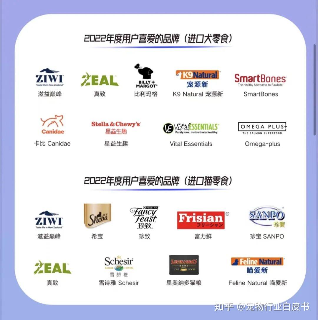 比利玛格、K9 Natural 宠源新、SmartBones、卡比 Canidae、Stella&Chewy’s 星益生趣、Vital Essentials、Omega-plus这些品牌都更加受犬宠主的喜爱,获得2022年度“用户喜爱的品牌(进口犬零食)”奖项;希宝、珍致、富力鲜、珍宝SANPO、雪诗雅Schesir 、里奥纳多、Feline Natural 喵爱新则受到了猫宠主的欢迎,荣获2022年度“用户喜爱的品牌(进口猫零食)”奖项。