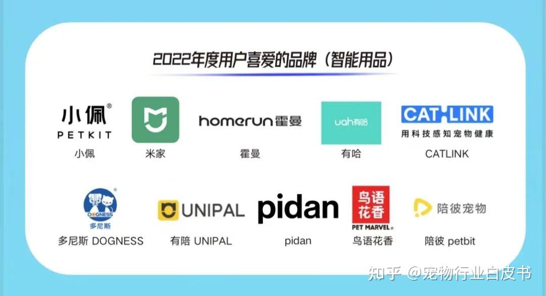 2022年度用户喜爱的品牌 宠物智能用品品牌 在宠物用品领域均有斩获的小佩,在宠物智能用品领域同样备受宠主喜爱。与此同时,米家、霍曼、有哈、CATLINK、多尼斯 DOGNESS、有陪 UNIPAL、pidan、鸟语花香、陪彼 petbit也获得了2022年度“用户喜爱的品牌(智能用品)”奖项。