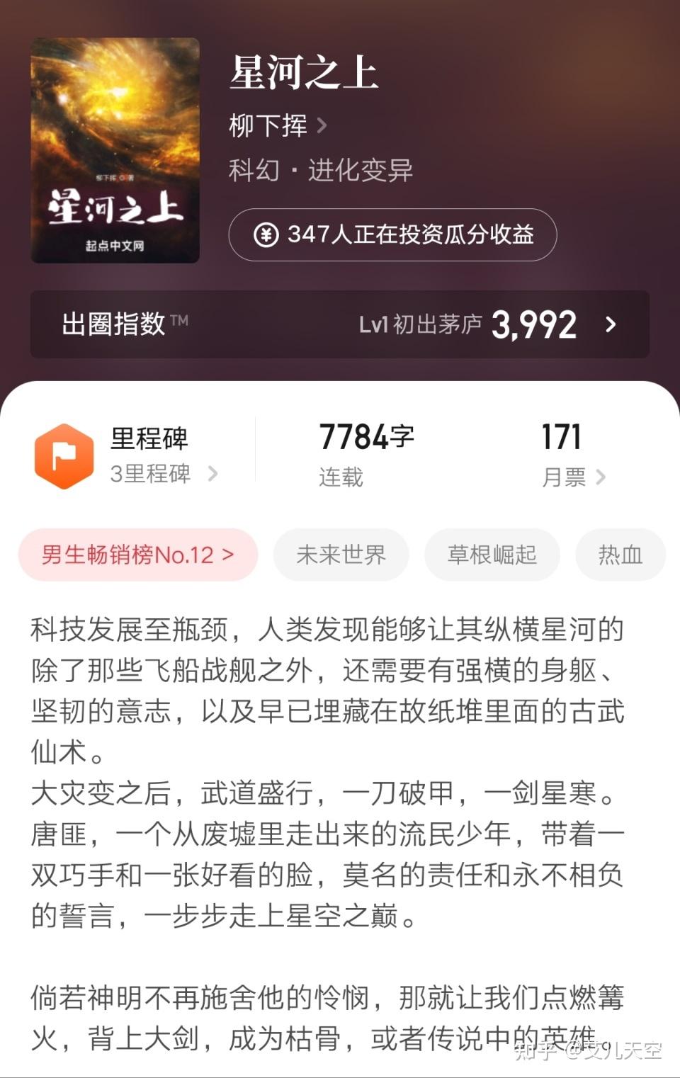 网文大神柳下挥计划于今天上线的新书已经来了。我本以为他还是会去写都市小说的,没想到这次换到科幻分类了。 当然不是那种大家认知的纯科幻小说,而是科技快速发展的背景下,结合了古武仙术的修行进化文。这类小说在起点上一般都是归类到科幻这一块的。 小说名《星河之上》,今天中午在起点上线的。柳下挥也在自己的公众号进行了宣传,更是强调新书是“很长很长”的那种长篇。但愿他说的是真的吧,反正上次他说是长篇的那本《龙王的傲娇日常》也只是写了130万字。 ![]() 小说目前的开头我已经去看了,主角疑似是新星上凤凰帝国一个被污蔑为叛国的将军之子。全家被直播火刑,主角当时刚出生没多久,疑似被其父亲的手下用了自身的孩子替换了他。 当然这是序言里的内容,而正文里,主角已经十四五岁了,但已经不在新星上了,而是在蓝星这个经历过大灾变,存在着各种妖魔鬼怪的废墟故土上。自身也已经成为了一个杀伐果断的狠人,后续故事如何展开,这次倒是可以期待一下。 因为这个开局不像定制文了,倒是像他回归起点后第二次认真写小说了。 第一次是那本《同桌凶猛》,狗粮满满的都市日常文,小说虽然是买断,但感觉他写的还是很认真的,也有万订以上的成绩,当初看得还是挺乐呵的。 ![]() 至于同桌之后的几本,《猎赝》《龙王的傲娇日常》《金装秘书》,我是觉得跟玩票似的,不管是订阅成绩,还是读者间的口碑,都是拿不出手的那种。 说是他的作品,但连载的时候讨论度都很一般。而自从2018年他从纵横回归,不知不觉已经五年了。 当初以为他回到起点会卷一卷都市的大神,结果并没有,要说没有一点失望,那肯定是不可能的。 ![]() 当然对于他们这些财富自由的大神,似乎也不能要求太高,毕竟写了这么多年小说,依旧还愿意动笔。 想想那些消失了好多年的大神,这似乎已经是让人欣慰的事情了。 另外这次开新书,不出意外地女频大神飘荡墨尔本又飘了白银盟了,前面《金装秘书》开新书的时候,她也飘过,大家还是很熟悉的。 我也是看到白银打赏,才知道柳下挥的新书已经上线了的。 ![]() 如果你不知道的话,可以去看看了。 还是希望这次的新书能有个好的反馈,再现他的大神风采的。 最后再补充两条新书消息。 一是女频大神尤前也在最近开了新书《我在仙侠世界被祖国征召了》,她的作品多是分类在女频的仙侠奇缘这一块,这一本也不例外。 另一个则是小段探花开了新书《黄泉狱主》,他的《修神外传》系列,估计不少人也有印象,虽然成绩一般,但都足够长。一本《修神外传》,一本《修神外传仙界篇》,两本加起来快三千万字了,也真是有毅力。 如果你对这两位的新书也有兴趣的话,可以去看看。 那么本期就到这里,我们下期再见。 |