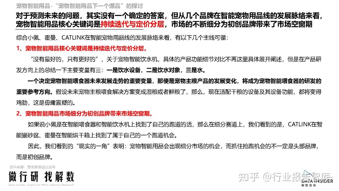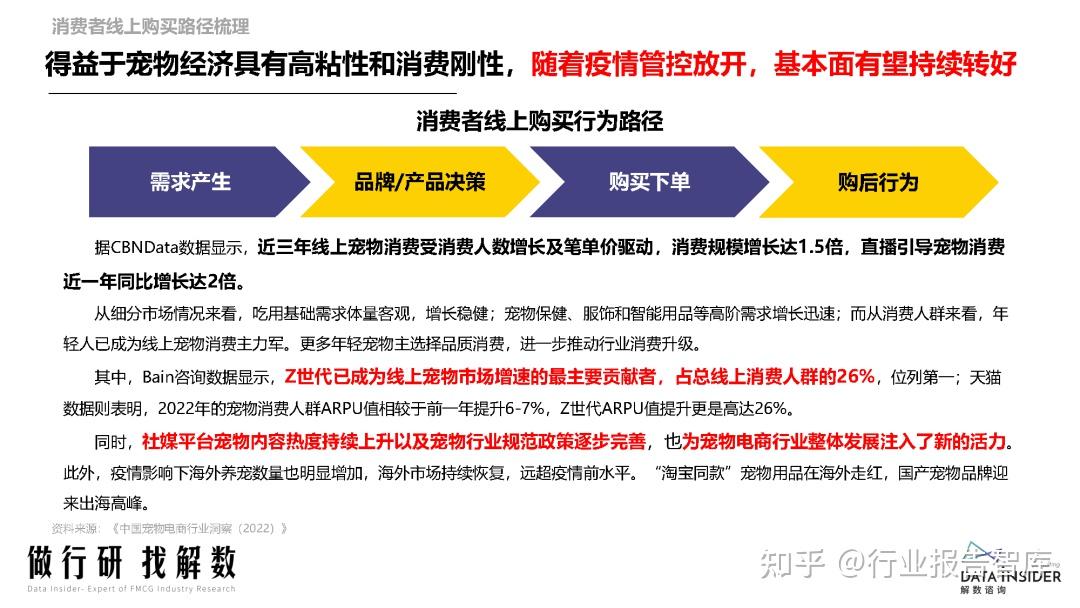 行业报告智库已收录20000+报告,每天持续更新中,覆盖全行业,有长期需要下载报告和行业交流的朋友,可扫下方二维码加入会员,2000+成员认可服务,下载无限制,本篇同类型报告已收录很多。客服:Hikalikuh 摘要:随着人们对生活品质的要求不断提高,宠物行业也迎来了快速发展的时期。报告显示,近三年线上宠物消费规模增长达1.5倍,其中,智能用品等高阶需求增长迅速,年轻人成为线上宠物消费主力军。这不仅说明了宠物消费市场的潜力巨大,也反映了消费升级的趋势。同时,Z世代也成为线上宠物市场增速的最主要贡献者之一,这一消费群体的消费水平和品质要求越来越高,为整个宠物行业带来了新的发展机遇。 目前宠物电商行业也在政策和社会意识逐渐提升的背景下获得了更好的发展机遇。宠物品牌也逐渐走向国际市场,取得了可喜的成绩。此外,大背景影响下,海外养宠数量持续增加,加快了宠物行业的全球化进程。 随着人们对健康、品质生活的追求,宠物行业必将迎来更大的发展机遇。作为一种新兴消费群体,Z世代的消费需求和观念必将对整个宠物行业产生重要影响,然而,更好的产品和服务、更坚实的品牌建设以及更多的创新与探索也是企业们需要关注的关键点。只有不断满足消费者的需求,才能在激烈的市场竞争中脱颖而出,赢得更多的市场份额。 来源:解数咨询 报告内容 以下是关于本篇报告的整篇内容,报告已存放到星球圈子,若需获取原报告(PDF)及更多报告,可加入圈子获取,关注公众号“行业报告智库”,在菜单栏处点击获取报告查看获取方式 ![]() ![]() ![]() ![]() ![]() ![]() ![]() ![]() ![]() ![]() ![]() ![]() ![]() ![]() ![]() ![]() ![]() ![]() ![]() ![]() ![]() ![]() ![]() ![]() ![]() ![]() ![]() ![]() ![]() ![]() ![]() ![]() ![]() ![]() ![]() ![]() ![]() ![]() ![]() ![]() ![]() ![]() ![]() ![]() ![]() ![]() ![]() ![]() ![]() ![]() ![]() ![]() ![]() ![]() ![]() ![]() ![]() ![]() ![]() ![]() ![]() ![]() ![]() ![]() ![]() ![]() ![]() ![]() ![]() ![]() ![]() ![]() ![]() ![]() ![]() ![]() ![]() ![]() ![]() ![]() ![]() ![]() ![]() ![]() ![]() ![]() ![]() ![]() ![]() ![]() ![]() ![]() ![]() ![]() ![]() ![]() ![]() ![]() ![]() ![]() ![]() ![]() ![]() ![]() ![]() ![]() ![]() ![]() ![]() ![]() ![]() ![]() ![]() ![]() ![]() ![]() ![]() ![]() ![]() ![]() ![]() ![]() ![]() ![]() 免责声明 本平台只做内容的收集及分享,报告内容来源于网络,报告版权归原撰写发布机构所有,由行业报告智库社群通过公开合法渠道获得,如涉及侵权,请及时联系我们删除;如对报告内容存疑,请与撰写、发布机构联系。 关于行业报告智库 行业报告智库社群从事收集行业报告多年,希望通过收集和整理报告帮助有需要的人更快更精准了解最新各行业各领域动态,目前已收集报告20000+,涉及各行业领域,如需了解更多详情可加入圈子。如有侵权问题,商务合作,其他咨询等问题,请联系客服Hikalikuh处理。 已有2000+小伙伴加入星球社区交流 ![]() ![]() ![]() ![]() ![]() ![]() ![]() ![]() ![]() ![]() ![]() ![]() ![]() ![]() ![]() ![]() 扫码加入圈子即可获取本篇和更多行业报告 往期推荐 2023中国社交媒体平台指南 2023-04-19 ![]() 创作的力量2023 2023-04-19 ![]() 2023银发人群消费趋势洞察报告-家用电器篇 2023-04-19 ![]() 2023年轻人社恐报告 2023-04-19 ![]() 今日报告分享 2023-04-20-2023中国新消费趋势白皮书-清渠数据&天下网商.pdf2023-04-20-2023年中国面膜消费趋势洞察白皮书-诺斯贝尔&用户说.pdf2023-04-20-2022年中国互联网保险消费者洞察报告-清华大学五道口金融学院中国保险与养老金研究中心&元保.pdf2023-04-20-宠物行业&宠物智能用品品牌调研-解数咨询.pdf2023-04-20-2022即时零售常温乳品白皮书-美团闪购&伊利.pdf2023-04-20-2022年养老消费调查项目研究报告-中国消费者协会.pdf2023-04-20-2023中国洗碗产品市场报告-英敏特.pdf2023-04-20-2023大型中式正餐私域运营白皮书-微盟.pdf2023-04-20-2023年休闲游戏报告-Liftoff.pdf2023-04-20-这家爸妈育娃指南-2023年家庭教育创作者报告-百家号.pdf2023-04-20-新消费行业月度观察报告-服装时尚-3月篇-亿欧智库.pdf2023-04-20-全球及中国底盘零部件后市场发展现状及智能化趋势-沙利文公司.pdf2023-04-20-2023年中国企业级无代码开发白皮书-艾瑞咨询.pdf2023-04-20-2023年中国员工敬业度白皮书-美世.pdf2023-04-20-2022年中国RPA市场探析报告- RPA市场产品分析(摘要版)-头豹研究院.pdf2023-04-20-2023年中国BIM行业词条报告-头豹研究院.pdf2023-04-20-2023年中国ICL(第三方医学检验实验室)行业词条报告-头豹研究院.pdf2023-04-20-传媒互联网行业深度研究-AI显性化元年-拥抱产业变革的星辰大海-国联证券.pdf2023-04-20-医药生物行业深度报告-肾神经阻断疗法有望开启高血压治疗新纪元-建议关注相关布局的优质企业-东方证券.pdf2023-04-20-卫浴行业深度报告-智能卫浴新变局-国货崛起正当时-浙商证券.pdf2023-04-20-可降解材料行业深度报告-政策、技术、产业齐发展-可降解材料替代大势所趋-山西证券.pdf2023-04-20-工程机械行业深度报告(一)-如何看2023年的挖机销量?-中泰证券.pdf2023-04-20-建筑装饰行业深度研究-央国企改革复盘及展望-柳暗花明-行稳致远-天风证券.pdf2023-04-20-氢能行业深度报告之三-质子交换膜PEM市场空间广阔-国产替代进行时-国海证券.pdf2023-04-20-煤炭开采行业深度报告-我国煤炭行业成本曲线研究-信达证券.pdf2023-04-20-电力设备深度报告-麒麟电池量产装车-注入产业升级新活力-中邮证券.pdf2023-04-20