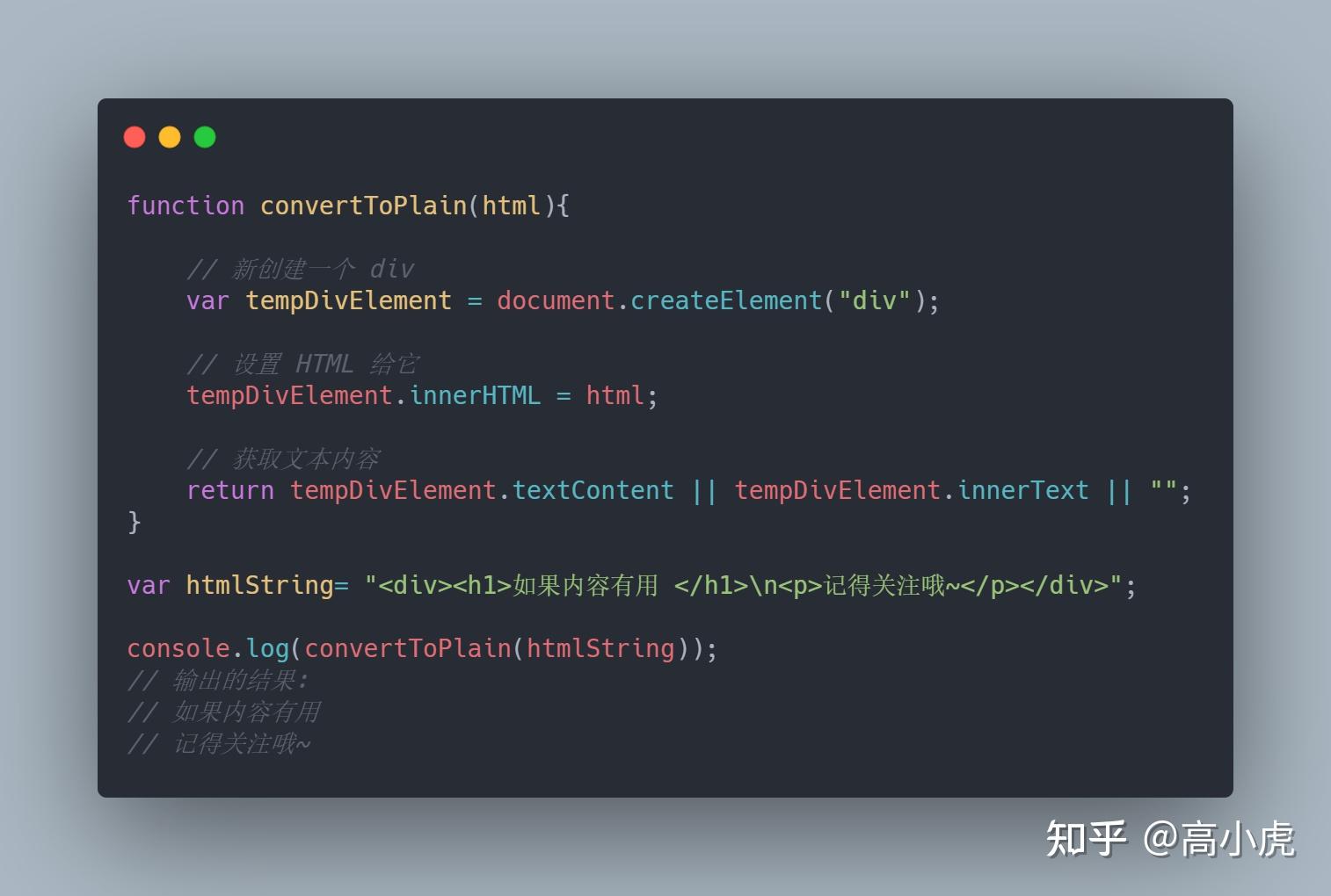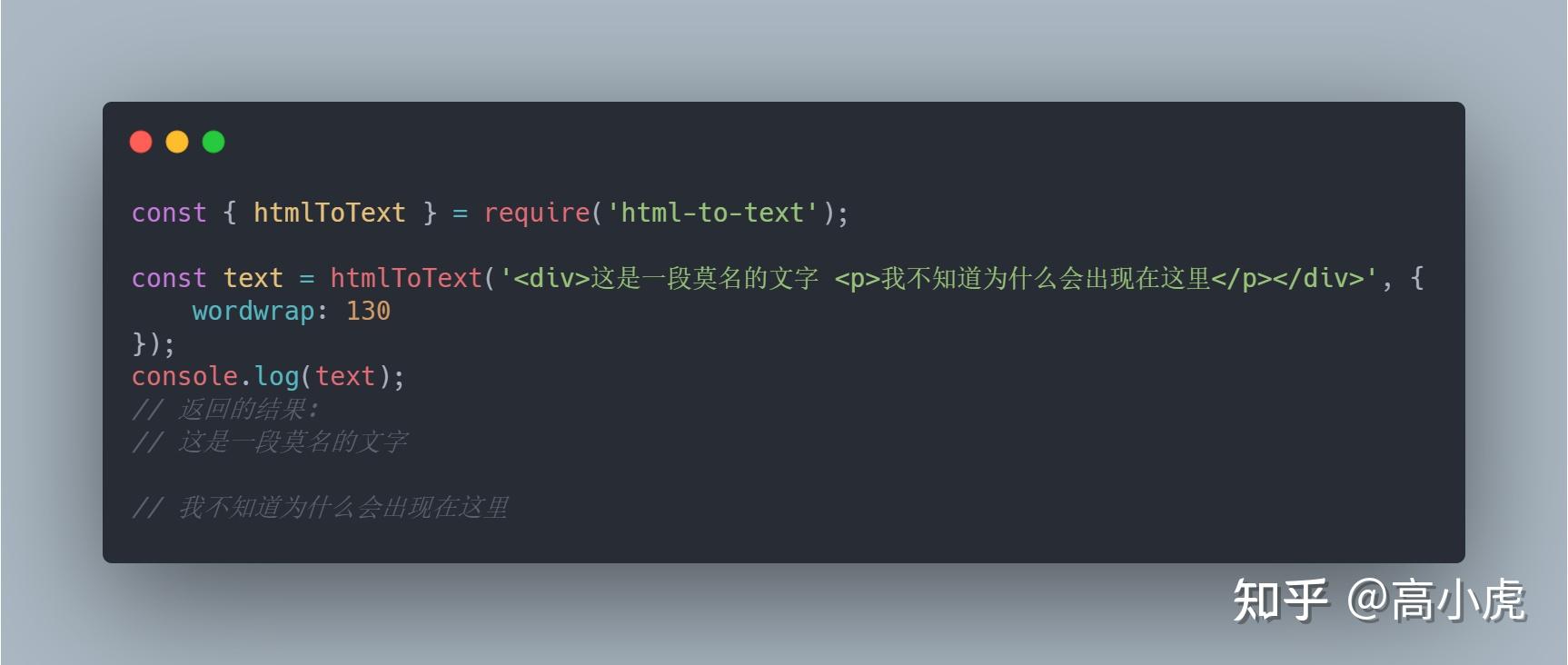 前几天,我手里的一个项目需要将富文本的所有 html 标签全部删除,得到纯文本后再存储到数据库中。在一系列得搜索操作之后,我找到了实现这个目的的几种方法,在这里我分享给大家,当你遇到同样的情况兴许也能用的上。 1. 使用 .replace(/<[^>]*>/g, '')这个方法是从文本中去除 html 标签最简单的方法。它使用字符串的方法 .replace(待替换的字符串,替换后的字符串) 将 HTML 标签替换成空值。 /g 是表示替换字符串所有匹配的值,即字符串中所有符合条件的字符都将被替换。 这个方法的缺点是有些 HTML 标签不能被剔除,不过它依然很好用。 ![]() 2. 创建临时DOM元素并获取其中的文本这种方法是完成该问题的最有效的方法。创建一个临时 DOM 并给他赋值,然后我们使用 DOM 对象方法提取文本。 ![]() 3. 使用 html-to-text npm 包html-to-text 这个包的功能很全了,转换也有许多的选项比如:wordwrap, tags, whitespaceCharacters , formatters 等等。 安装: npm install html-to-text使用: ![]() 最后感谢阅读,如果此文对您有帮助,请点赞或添加关注。 |