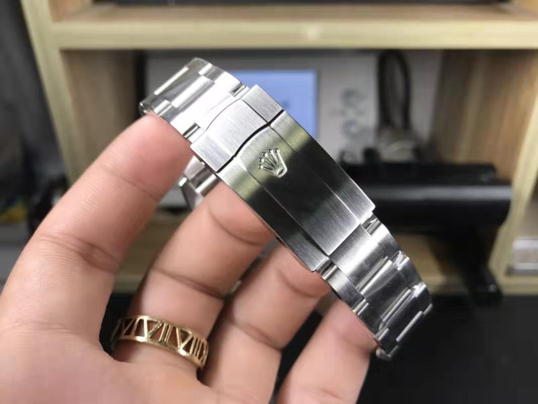 腕表内部搭载的是具备超级天文台标准的定制版3132机芯,即每天误差在±5秒内。表带采用的是蚝式表链,由于是劳力士的入门款式,所以它的表扣是没有快速微调的功能设计。并不能像DJ那样折叠末端表链微调,也不能像水鬼系列那样滑动微调,蚝式恒动腕表也只能是通过工具进行表扣的微调。