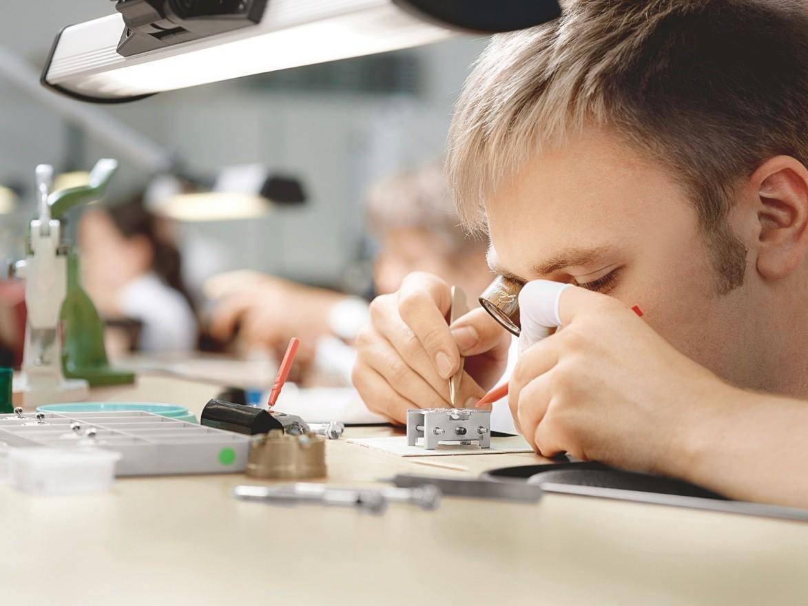 Senator Excellence Panrama Date 议员卓越大日历腕表 为了确保漆层不损害腕表的功能性,这一步骤必须达到极其严苛的工艺和精密性要求。如果漆层过厚,便会导致两个日期显示盘产生摩擦,进而可能锁止不动。理想情况下,两个显示盘之间的间隙应为0.06毫米:如果间隙过大,会影响腕表的整体美观;但如果间隙小于0.06毫米,则可能产生摩擦,影响腕表的正常运行。