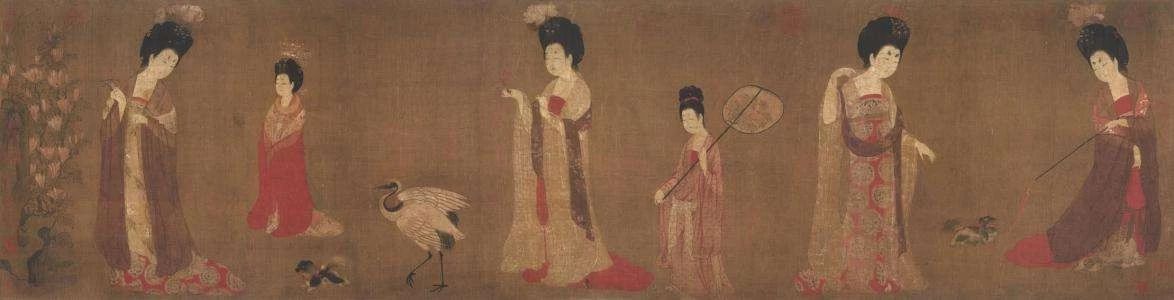 这也符合中国晚唐历史时期的服饰特征。晚唐时期的服饰图案更为精巧美观,花鸟服饰图案、边饰图案、团花服饰图案经常与帛纱材质一同运用,服装整体轻柔精致,凸现出高贵的气质。“罗衫叶叶绣重重,金凤银鹅各一丛,每翩舞时分两向,太平万岁字当中”唐代服饰的发展是整体上的发展,在鞋、帽、巾、玉佩、发型、化妆、首饰的表现,都说明了这一特点。