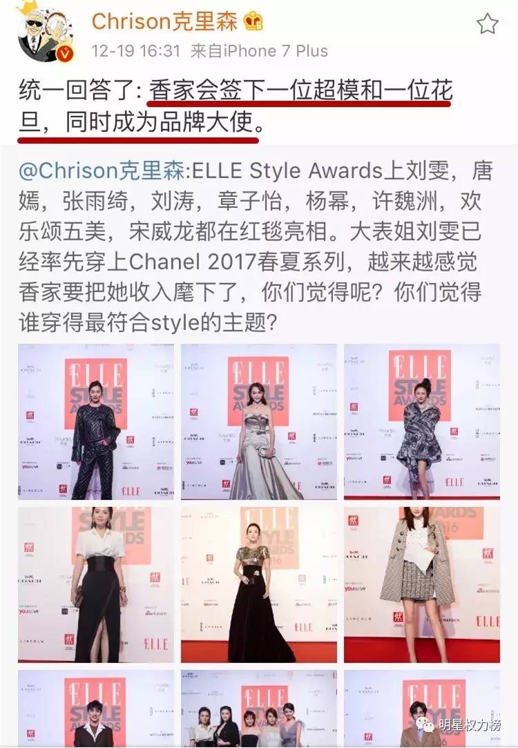 明星权力榜 用数据说话 与粉丝同行 去年开始关于香奈儿新的形象大使这个大饼到底会花落谁家这事儿就一直在被广泛讨论。吃饼艺人众多,从姚晨到刘诗诗再到林允欧阳娜娜以及男生那边的陈伟霆都有份。