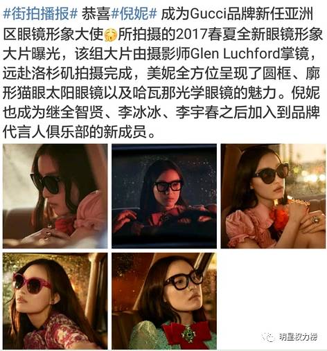 今年年初又拿到了Gucci品牌亚洲区眼睛形象大使↓