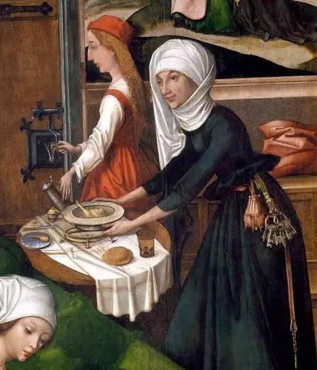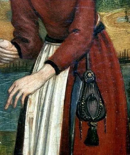 在16世纪文艺复兴的顶峰时期,女性把手袋系在装束腰带上面,当时衣服里面没有口袋,所以腰带上除了手袋还会系上重要物品比如香丸、钥匙、祈祷书甚至匕首等。