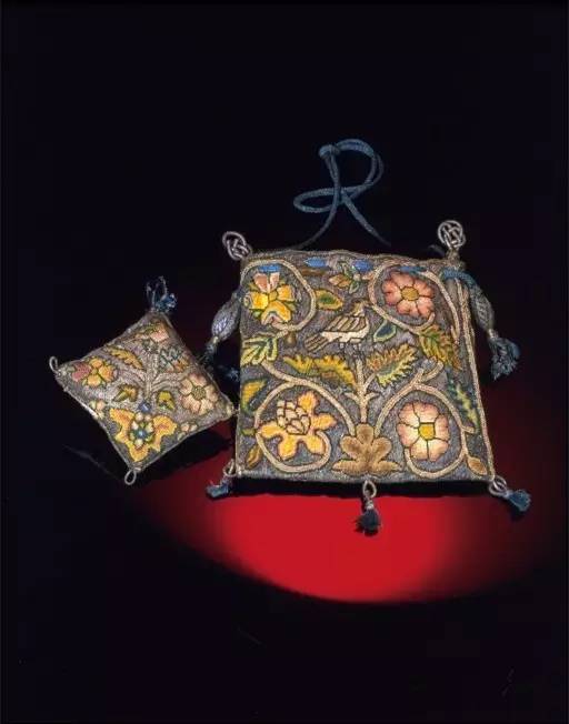丝绸银线刺绣钱包和针垫/英国/1600-1625年