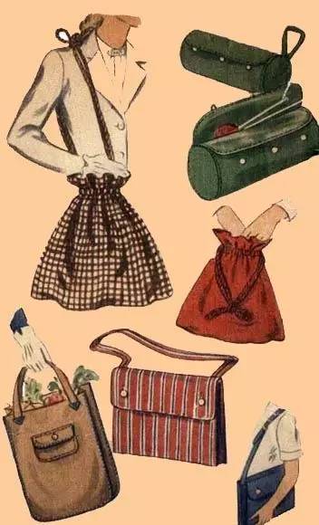 二战时期女性的手提包、肩包、带零钱包的购物袋、编织袋