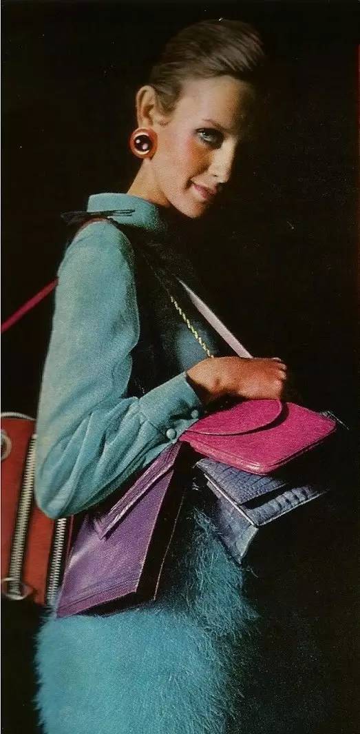 60年代,摇滚音乐流行起来,时装界来了一场充满青春活力的迷你裙和裤装款式的革命,年轻一代女性们的品位也期望新式包饰的出现,各种造型小巧,肩带长长、式样简洁的挎包以及狭窄的手拿包成为了时髦。