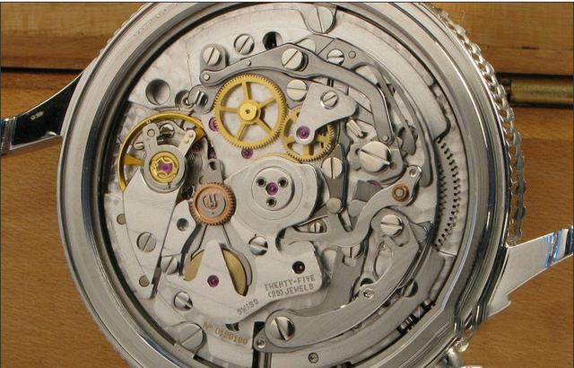 寶璣飛行計時表 3800/3817 使用的 582/584 自動上弦計時機芯,下圖為去掉自動陀的 582/584 機芯,我們可以清晰的看到壹套水平離合機構和凸輪。