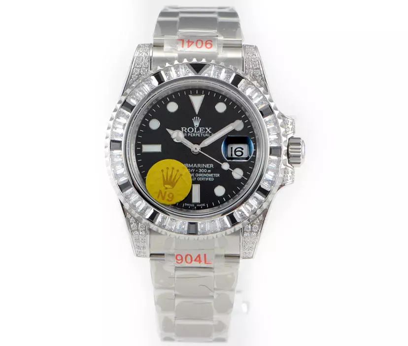 劳力士绿水鬼绿钻系列,外观精细,搭载稳定的ETA2836机芯,进口蓝宝石玻璃镜面,3点位也是蓝宝玻璃电蓝光,超强夜光 ,陶瓷圈刻度加银粉,904L精钢,表扣做工精致,防水深度100m,直径40mmx10mm。也可搭配美大洲鳄鱼皮表带+正扣子。