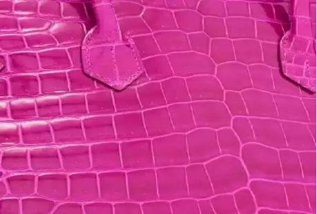 比较亮的短吻鳄鱼皮质,带有光泽的小鳄鱼皮鳞,表面看很容易区别于哑光鳄鱼皮。