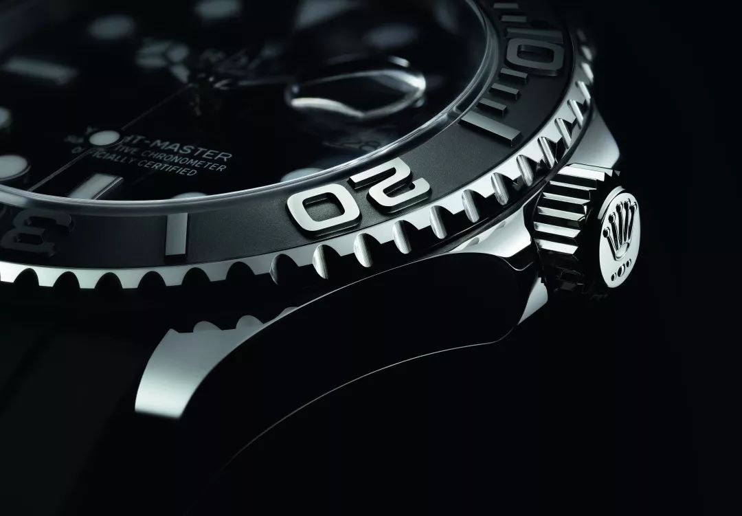 劳力士在陶瓷技术的发展上屡创先河,凭借顶尖技术,开发了一体成型的陶质外圈及陶质字圈。此创新材质不仅抗腐蚀,防刮损,即使受紫外线照射也不褪色。品牌经过多年潜心研发,已发展了一套独有的专业知识与创新的高科技设备及制作工序,因此可完全独立生产陶瓷组件。游艇名仕型42 配备双向旋转外圈及哑光黑色 Cerachrom 60 分钟刻度陶质字圈,立体数字及刻度均通过陶瓷铸模法制成,随后进行抛光处理。字圈首 15 分钟标有分钟刻度,从而可以更精确计时。外圈齿边使佩戴者能够轻易抓紧并旋转外圈。