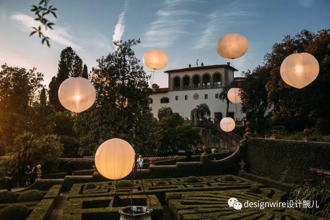 漂浮着的发光白色气球构筑一场婚礼般的梦幻世界,衬托品牌创意总监Clare Waight Keller 的设计特色,模特在柠檬树和精心修剪的灌木丛来回穿梭。