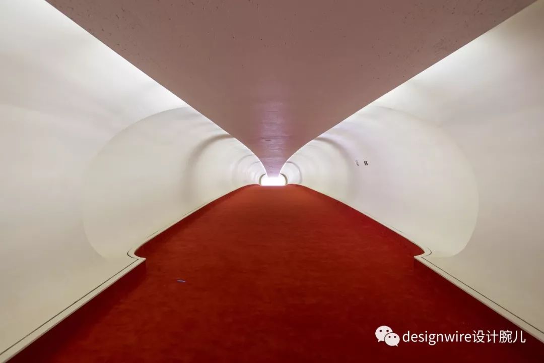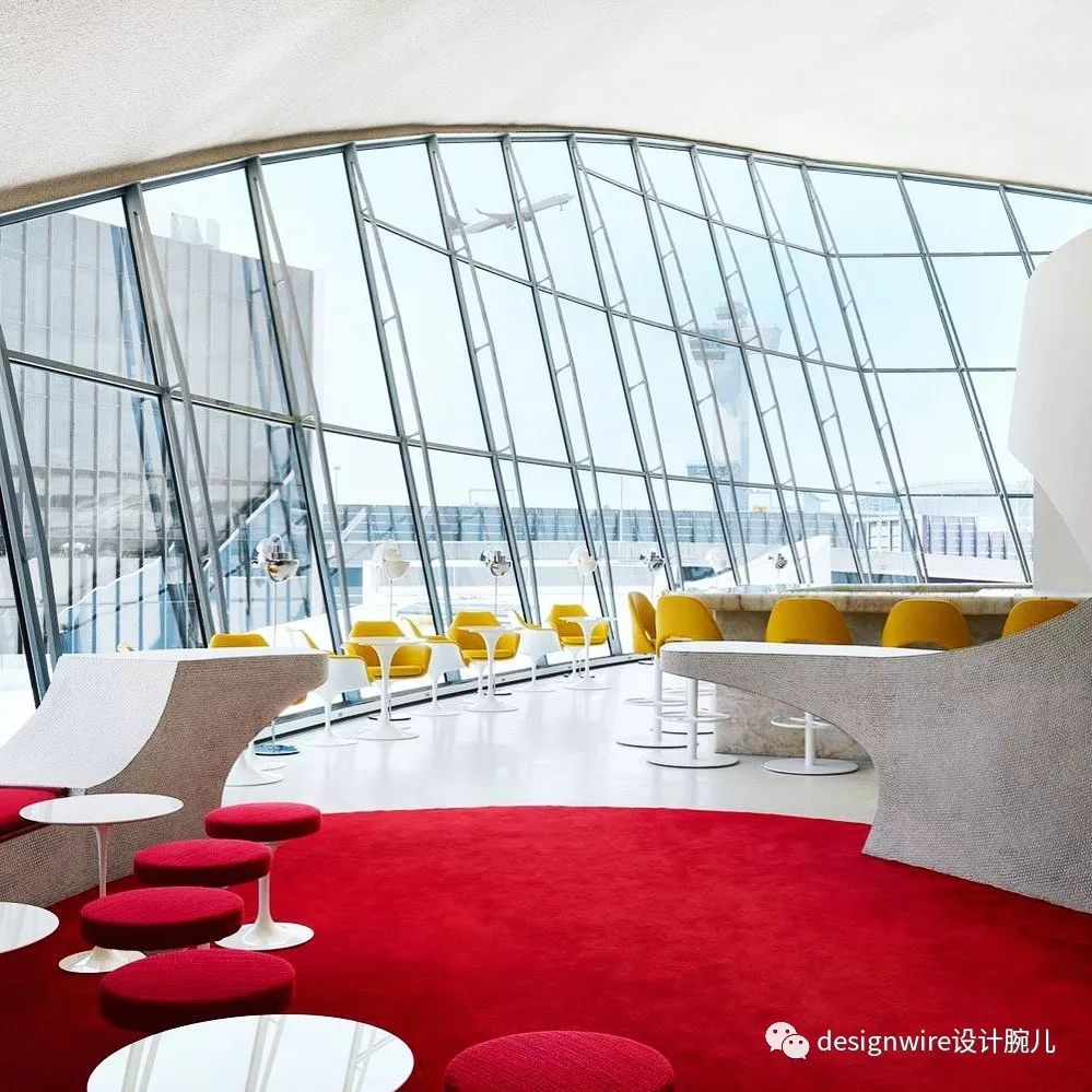 同时,两条管状走廊朝着登机口走去, TWA机场的红色的内饰与灰色的混凝土材料形成的强烈对比,为旅客留下旅行中深刻的印象。