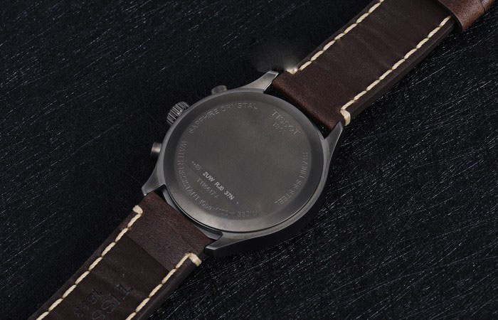 背面为密底的设计,内部搭载ETA G10.212石英机芯,是改进之后的ETA G10.211的版本,修复了一些问题,然后把日期放到了4点钟位置,计时不开启的情况下,电池可用30个月以上。