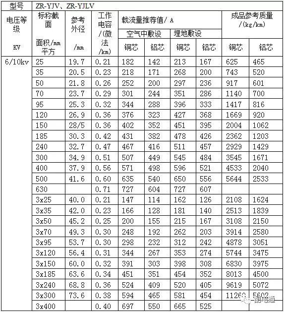 YJV、YJY、YJV22额定电压在6/6、6/10kv电缆载流量