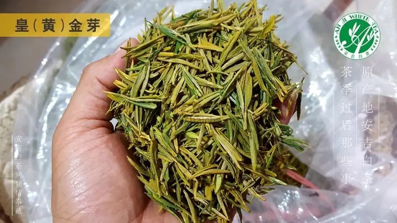 皇(黄)金芽干茶:安吉茶人总是会给同一款茶取一些新名,不是特别黄的皇(黄)芽叫“金镶玉”。泡开后和上面精品的一样一样....