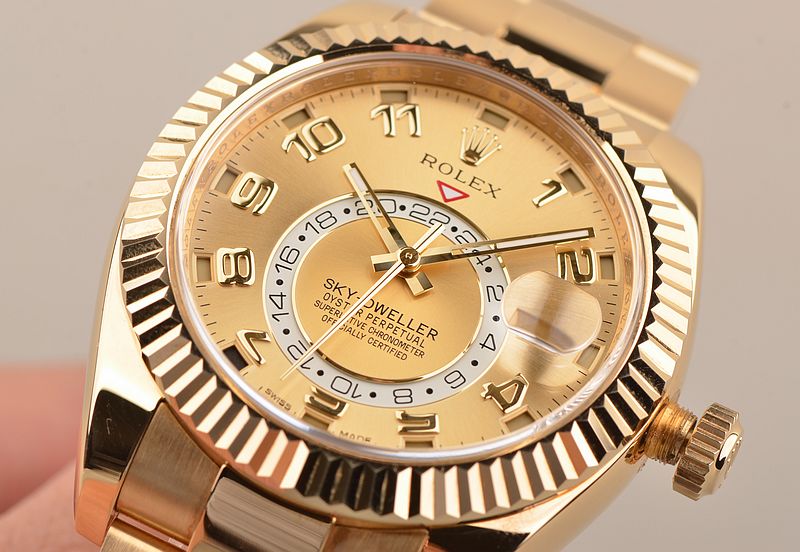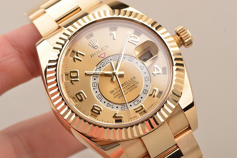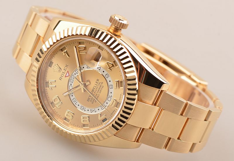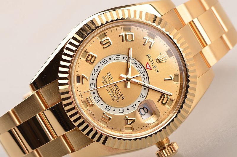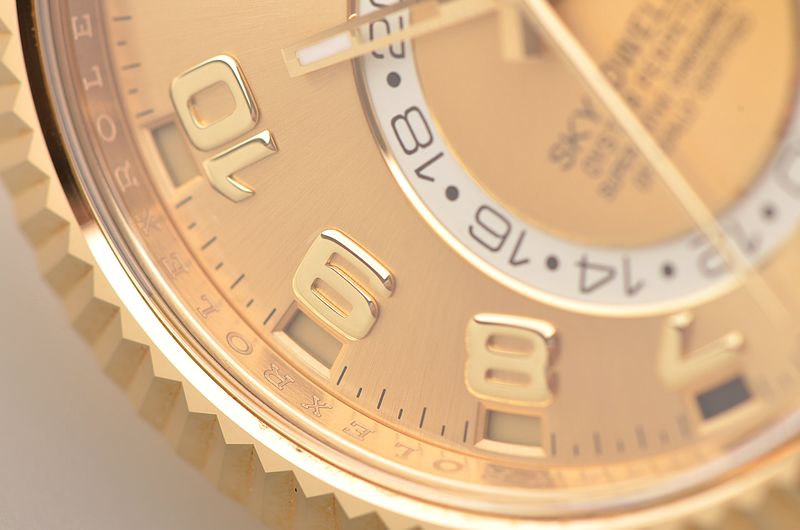 基本信息编号:326938-72418 品牌:劳力士 系列:SKY-DWELLER 机芯类型:自动机械 性别:男士 我来纠错 机芯机芯型号:Cal.9001 出产厂商:34 机芯类型:自动机械 振频:28800每小时振荡次数 宝石数:40个 动力储备:72小时 我来纠错 外观表径:42毫米 表壳厚度:暂无 表盘颜色:金色 表盘形状:圆形 表带颜色:金色 表扣类型:蚝式带扣 背透:密底 重量:暂无 防水深度:100米 我来纠错 材质表壳材质18CT黄金 表盘材质暂无 表镜材质蓝宝石水晶玻璃 表冠材质18CT黄金,旋入式双扣锁防水表冠 表带材质18CT黄金-蚝式带扣 表扣材质18k黄金 我来纠错
