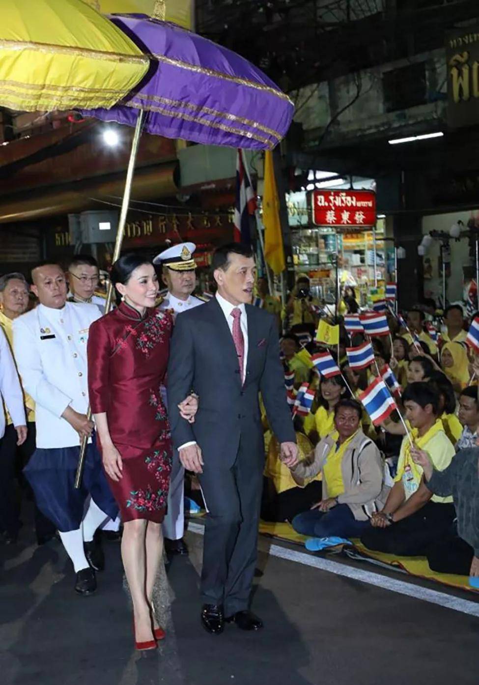 无论走到哪里苏提达都会是人们关注的焦点。照片中的苏提达和国王玛哈·哇集拉隆功走在泰国的街头,国王西装革履搭配黑色皮鞋充溢着王室的风范。苏提达则是身衣着红色的短旗袍,显露了纤细的腿,搭配上一双红色的高跟鞋,让她给人一种性感的美。她面带笑容,一双深邃的眼睛看着坐在公开的大众,她的手臂悄然的挽着国王的手,看起来十分的恩爱。 国王玛哈·哇集拉隆功出生于52年与苏提达相差了36岁。固然相差了36岁,但是国王玛哈·哇集拉隆功将苏提达立为王后有着自己独道的眼光。照片中的两个人身衣着皇室的衣物,戴着皇室的装饰品,尽显王室的高尚的风范。国王显得依旧风采依旧,手上的两枚戒指展示了他高高在上的位置,苏提达亭亭玉立的站在国王身旁,脸上永远带着笑容,让人觉得十分的和蔼接近。
