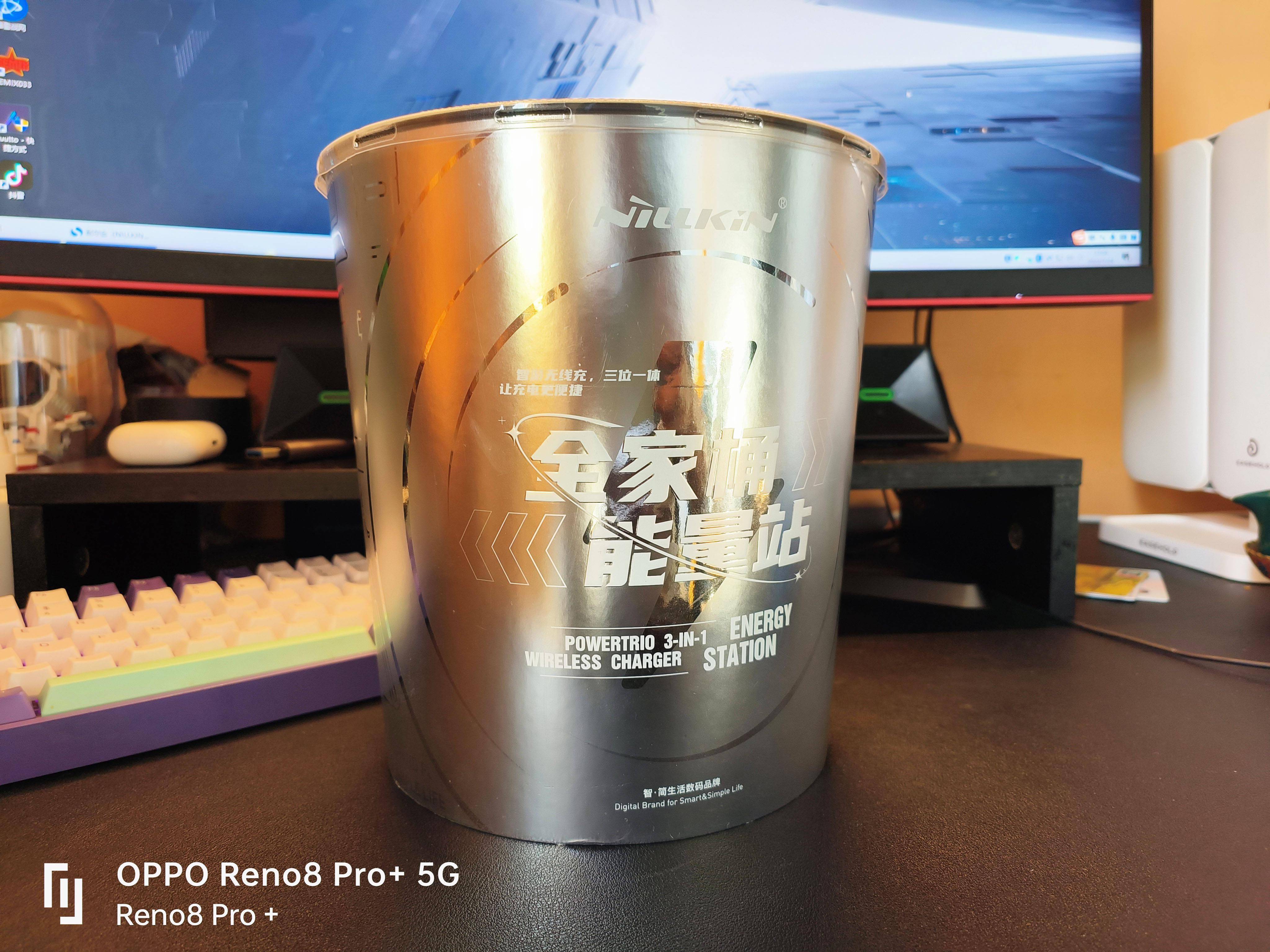 刚好我最近也是收到了耐尔金三合一无线充电器,这款产品设计思绪和市面上常见的产品不太一样。首先这个包装的确足够亮眼,有点“猖獗星期四”的觉得了。