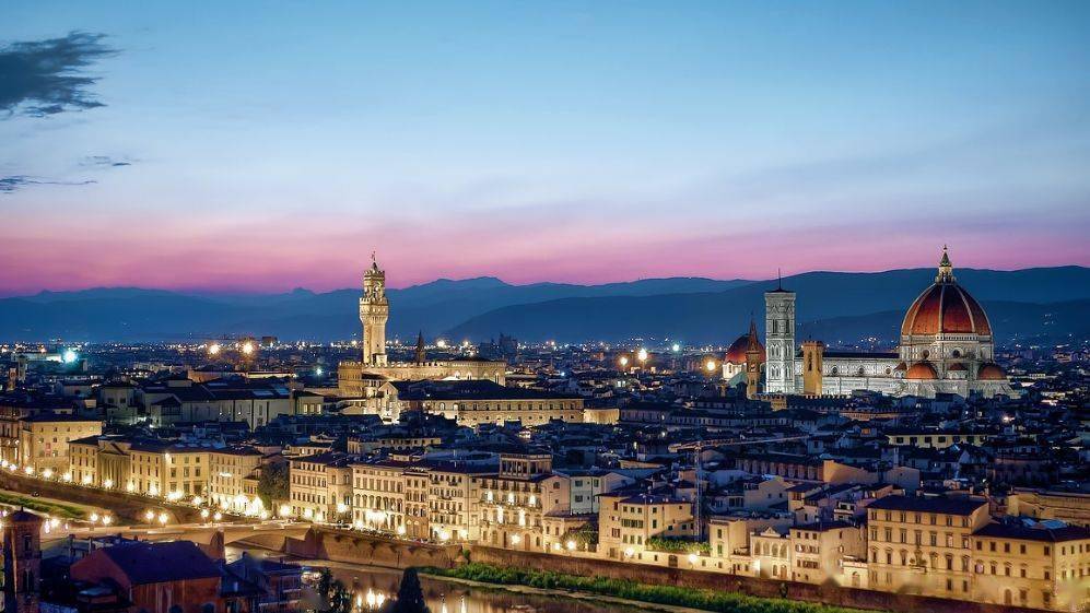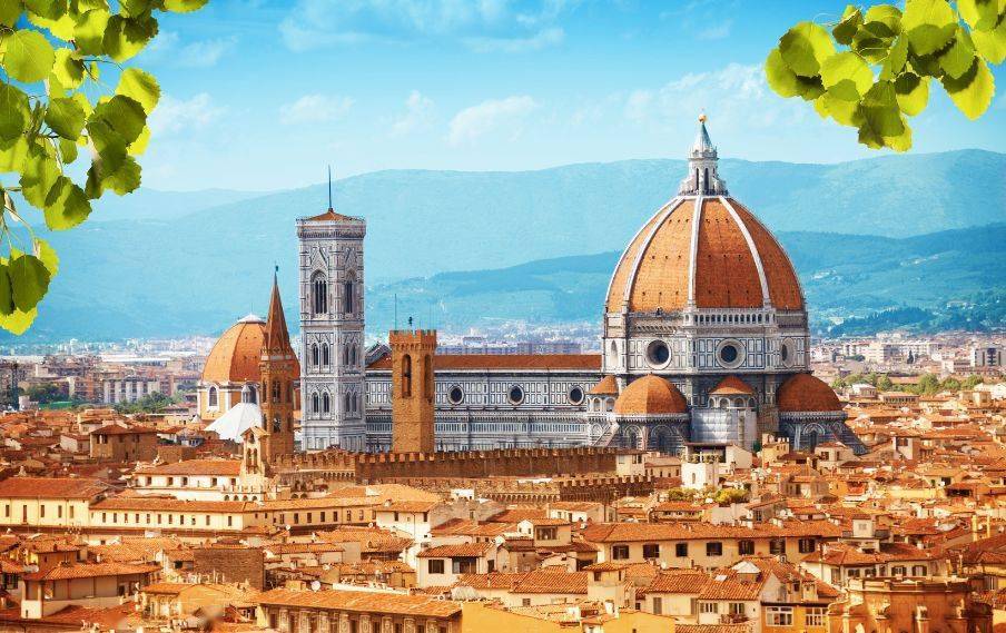 不外,作为融合了历史与现代、时兴与艺术的国际大都市,米兰最具吸收力的还是购物。这里有被称为“购物圣地”的埃马努埃莱二世长廊,也有汇集了世界著名的珠宝、时兴 品牌的蒙特拿破仑大街。 3 在圣母百花大教堂上俯瞰佛罗伦萨 佛罗伦萨是意大利最著名的文化旅游胜地。这座城市不只是艳阳下的托斯卡纳大区的首府,也是文艺复兴的发源地、中心和极为著名的世界艺术之都,更是众多文化和历 史名人的家乡。