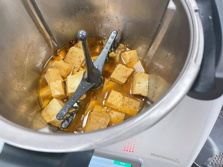 有些比较容易碎的食材,刀头的反转基本上能够让食物维持原状,不会被刀头切碎,例如是豆腐类的还可在料理机中参与蝴蝶棒,这样食物就更不容易碎啦。话未几说,直接看我做的麻婆豆腐,是不是没有碎!