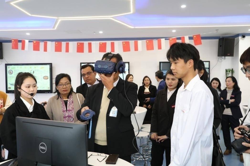 在聪慧教育大楼,代表团了解了师范专业学生教学技艺锻炼的主要状况,参观了书写技艺实训区,现场体验了5G聪慧VR教学区,对南昌师范学院坚持理论导向的教员教育体系表示高度赞扬。