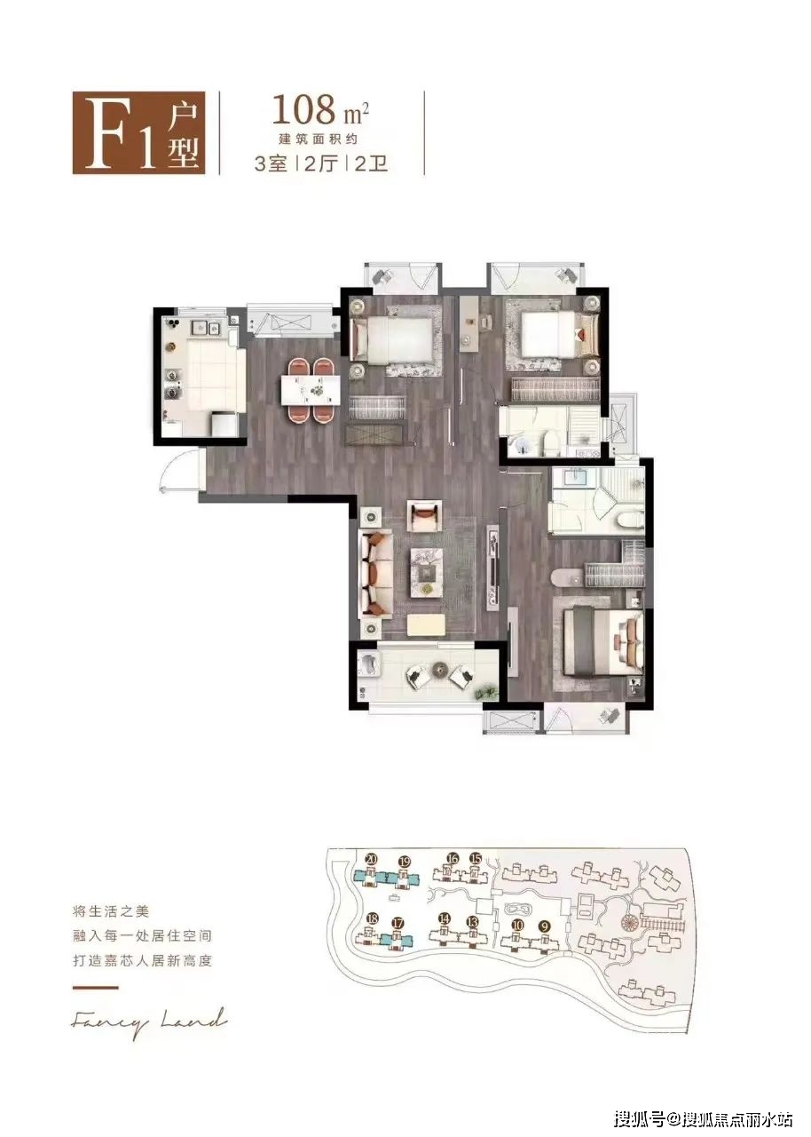 17-19-20号楼边套、两梯四户(18层) 约108㎡ 3房 2厅 2卫 (108套)