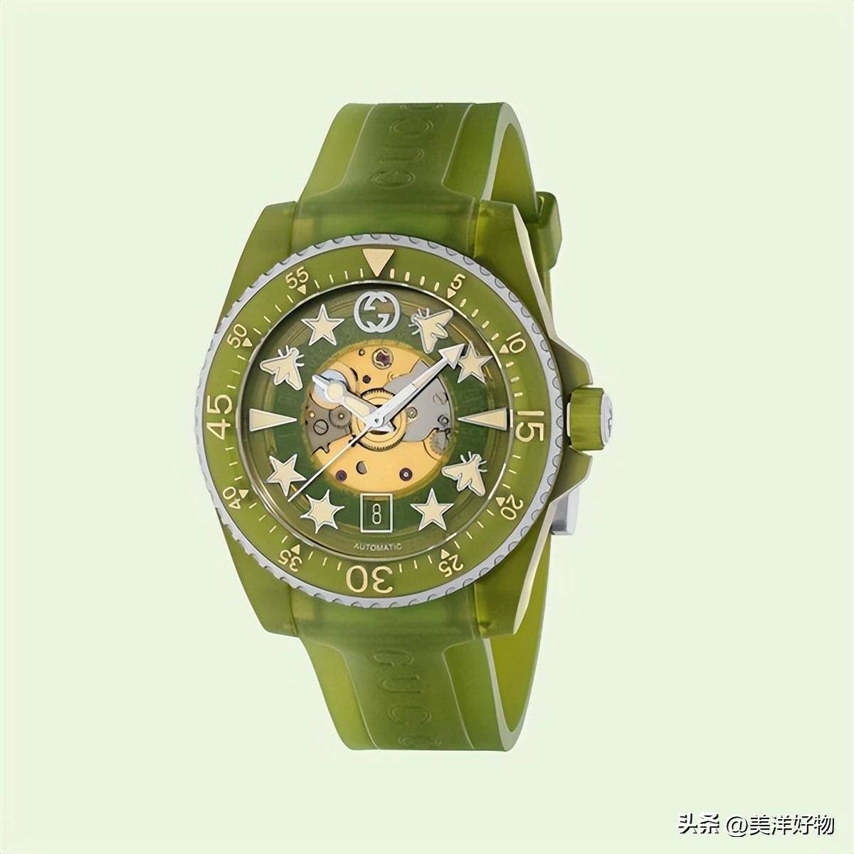 ▲不论是生物源塑料或是循环再造钢,都出于GUCCI关于推行可持续性展开的品牌理念。 新款GUCCI Dive潜水表表径为适中的40mm,它的表壳、表带等外部零件资料的来源都是以环保为动身点,呼应品牌推行的可持续性展开理念。品牌一口吻释出半透明、雾面白色、蓝绿色、苔绿色等四种颜色表壳,四款都搭配与表壳同颜色的生物源塑料表带,让手表看起来相同具有视觉分歧性。