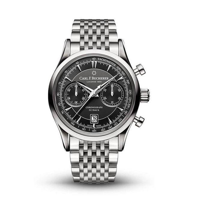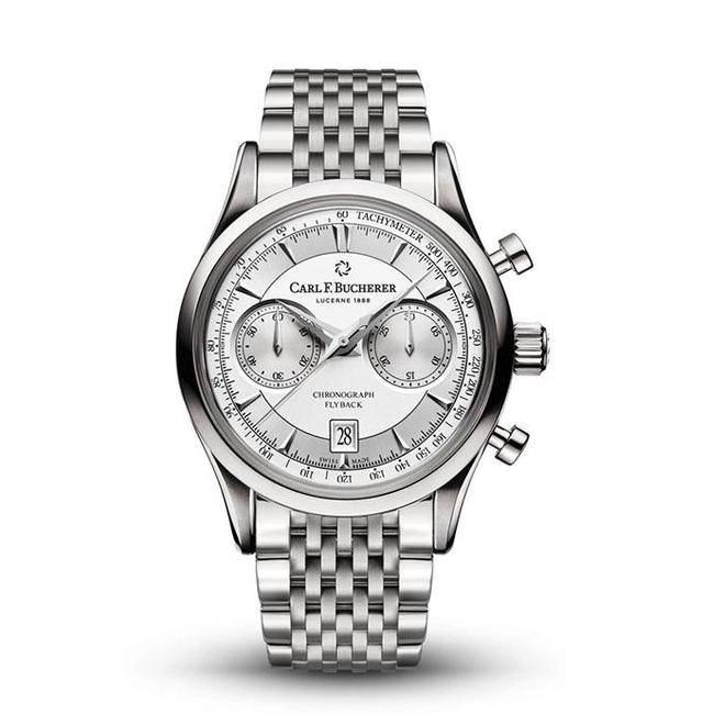 该款腕表简约大气,表盘备有两个计时盘、小秒针盘与日期显现,黑色表盘彰显霸气,银色表盘亦能够在伎俩演出绎文雅光彩。腕表配备飞返计时功用,搭载CFB 1970自动上链机芯,配备42小时动力存储。