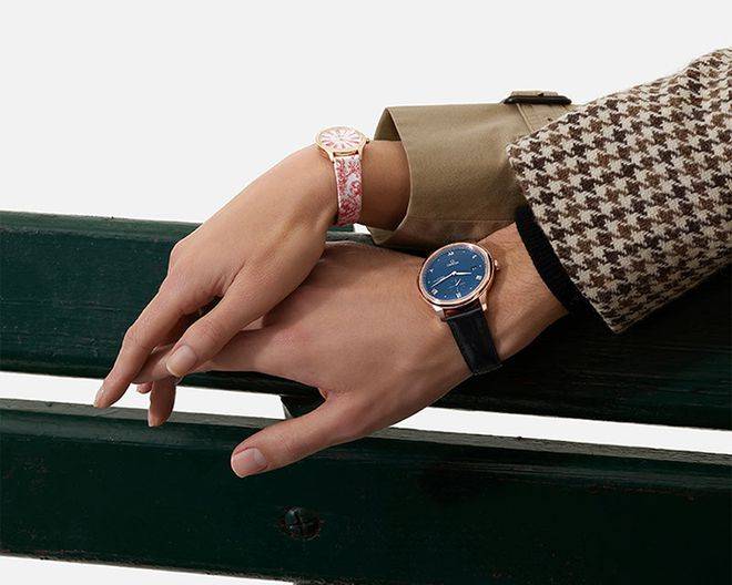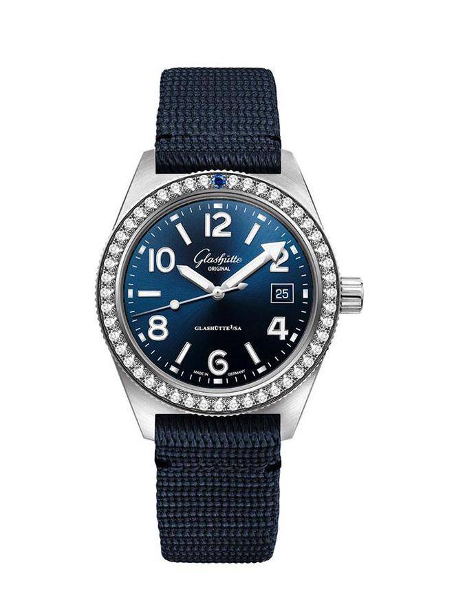 SeaQ计时腕表和镶钻SeaQ腕表,深邃的蓝色表盘给人视觉上的调和统一,可谓是“佳偶天成”。两款腕表配备的蓝色尼龙编织表带,可在多种场所自由切换。