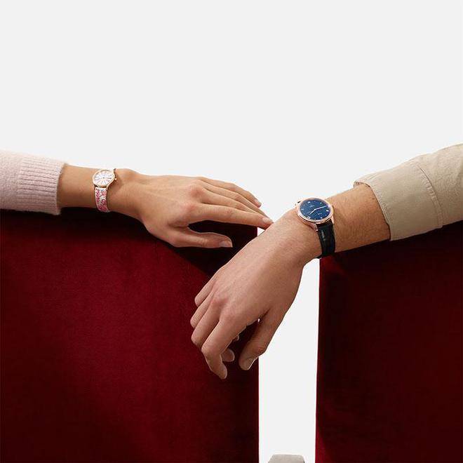 该款腕表将柔粉色的时标刻度、夜光心形的秒针尖端以及地道洁白的腕表配色相分离,以细腻浪漫的元素尽显甘美爱恋。自带夜光功用的简约白色表圈,搭配3、6、9、12点位上柔粉色时标刻度,秒针尖端同样以柔粉色勾勒浪漫轮廓。