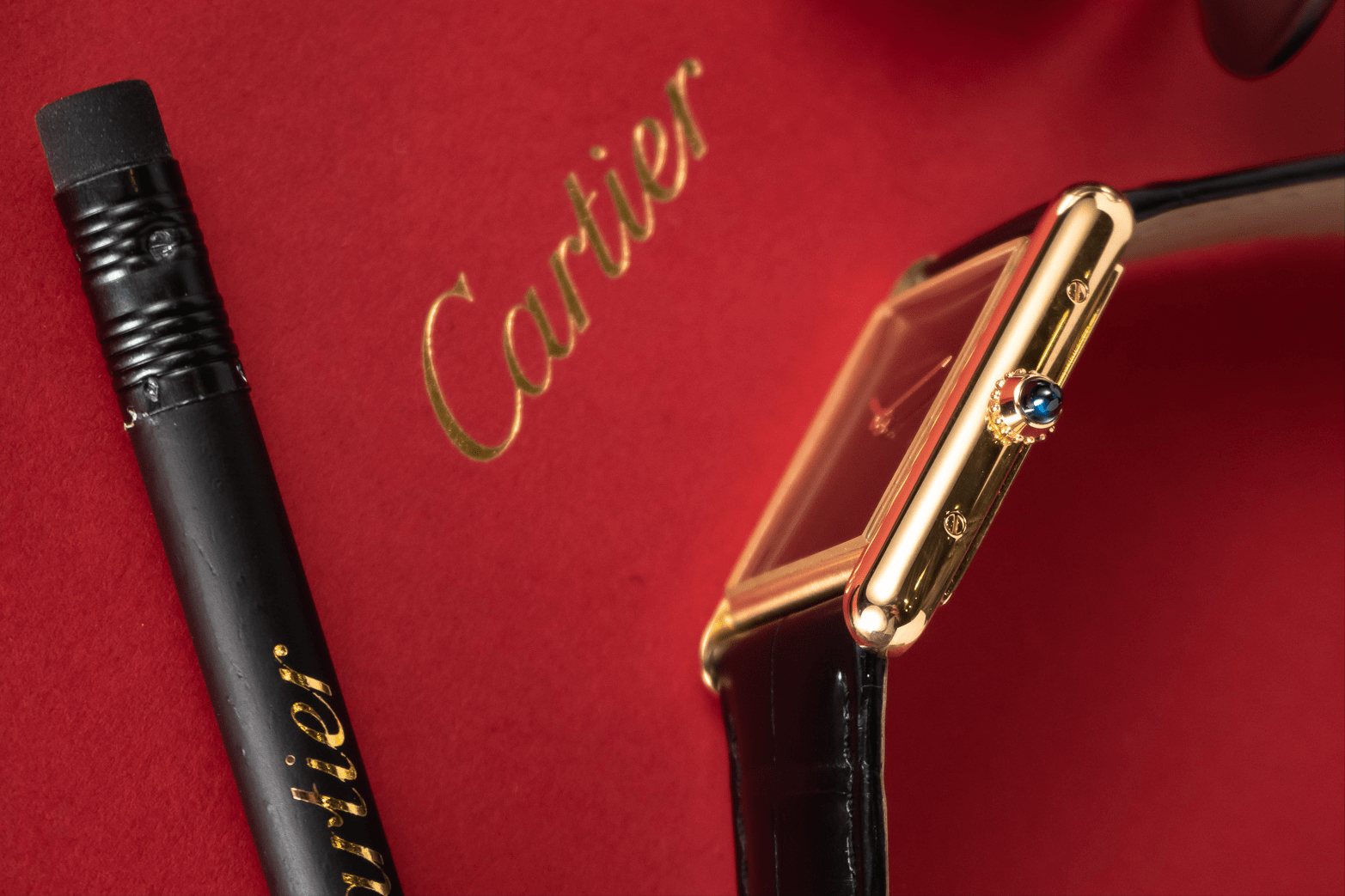 这款手表与同样令人惊叹的灰色和波尔多矩形“马赛克”表盘一同发布,卡地亚为这款手表配备了“大”表壳,尺寸仍为 25.5 毫米 × 33.7 毫米。它的厚度为 6.6 毫米,是一款十分易于佩戴的手表,具有足够的伎俩存在感。标记性的金色表壳,圆满地突出了 Tank 的文雅设计。