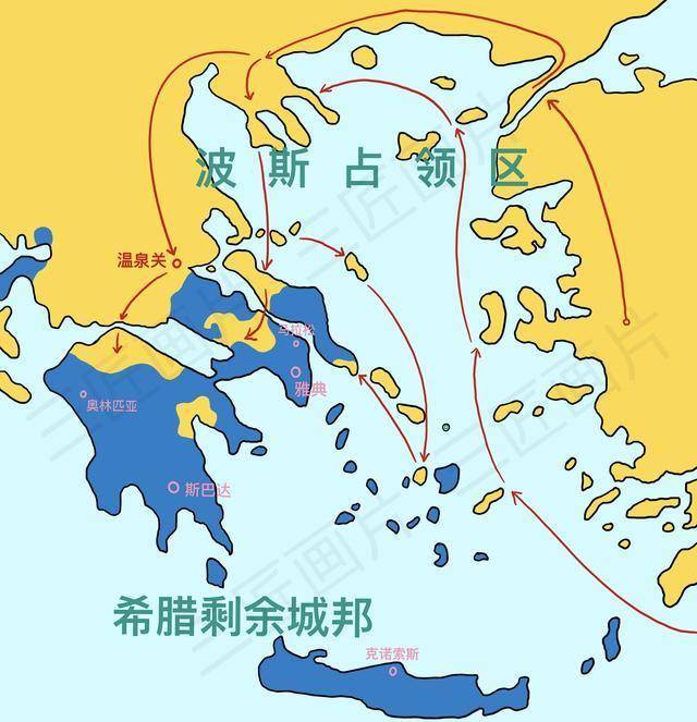 斯巴达人失败的音讯震惊了全希腊,随后底比斯屈从投诚,成为波斯人忠实的仆人,雅典人知道正面对立没有任何取胜机遇,于是弃城而逃,给波斯人留了座空城。 波斯军队占领雅典后,发现城内无人,又无处发泄怒火,于是熄灭了整座雅典城。