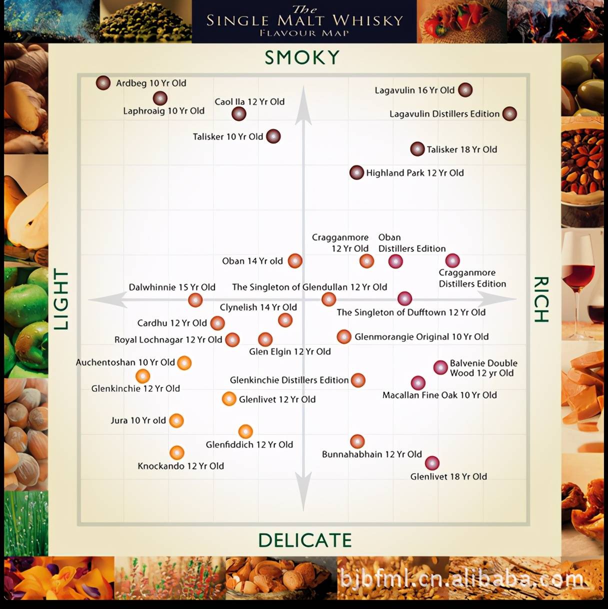 各区产品特性 高地域Smooth & Floral 高地域地地形起伏猛烈、气候冰冷,因而也塑造了个性较为激烈的威士忌产品形象。但是,有鉴于该区包含的范围宽广,区内的蒸馏厂散布零星,要想很明白的归结出一个高地域威士忌的特征,其实不容易,某些位于西岸向风面或是十分北部海边的蒸馏厂,制造出来的威士忌口味特别浓烈厚重。假如要说,质地的确,口味甘烈,带有一些泥炭熏香与海水盐味,可能是大部分高地型威士忌都有的特质。 由于高地域的范围真实太广,有些威士忌的酒评还会进一步将其划分为北高地(Northern Highlands)、西高地(Western Highlands)、东高地(Eastern Highlands)、中地(Midlands)与独立的各岛屿,包含奥克尼群岛(Orkney Islands)、斯凯岛(Isle of Skye)、茂尔岛(Isle of Mull)、侏罗岛(Isle of Jura)与亚兰岛(Isle of Arran)。在这样进一步细分之后,各次分区境内的酒款就比较有共同的特性能够比较,清查其因,地形与区域的差别影响了水质与空气,是影响口感十分关键的要素。 代表品:帝摩,克里尼利基,皇家蓝勋,格兰杰,巴布莱尔,富特尼,达尔维尼 低地域Light & Fresh 低地域蒸馏厂打从过往就不时十分稀少,在近年来其数量又更进一步的锐减。此区域缺乏高地域的强风吹拂与严峻地形及气候,也很少有泥炭沼泽地的存在,制造出来的威士忌普遍带有的是截然不同的温和植物芳香,无泥炭味与海水盐味,特性并不是很明白。不外,正由于此区的地势低缓农作丰厚,许多大型的谷物威士忌蒸馏厂都位于此区境内。 代表品:欧肯特轩,格兰昆奇 艾拉岛Peaty 艾拉岛(Isle of Islay)是一个位于苏格兰西南部的离岛,与世隔绝的此区正好是面对大西洋海风的第一线,当威士忌由爱尔兰传入苏格兰时也是由此来源,因而无论是在历史上还是天文上,都具有悬殊于其他离岛的位置。艾拉岛盛产泥煤(peat),此区的威士忌普遍具有十分重的烟熏水平,由于大部分的酒厂都紧邻海岸线,因而海盐般的咸味也是此区威士忌普遍的特征之一。 代表品:阿贝,拉弗格,布鲁莱迪,波摩,乐加维林