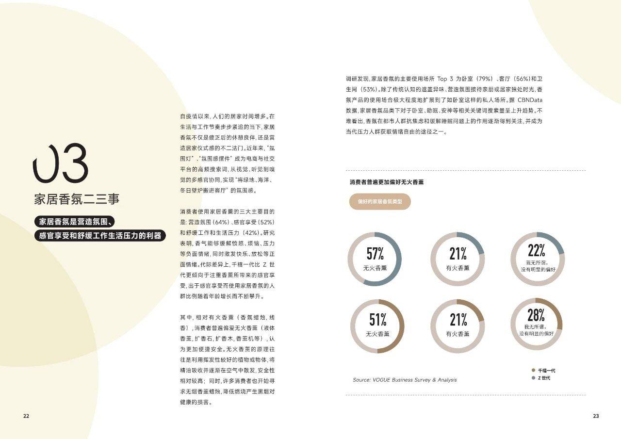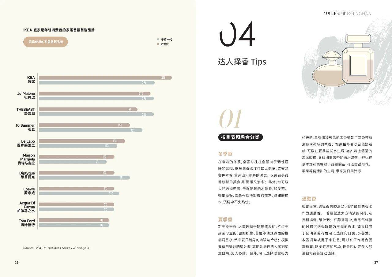关注公众号【圣香大数据】获取完好版讲演摘要:香水香氛产品正在疾速成为中国朴素品消费者的必备配饰。从大牌商业香到小众沙龙香,从蜡烛、精油到扩散器和香薰,各种各样能够带来感官愉悦和刺激的产品,快速进入中国年轻人的日常生活。 但是,中国消费者和香水香氛之间的历史是迂回有趣的。室内用香这个生活习气在中国有着长久的历史,能够追溯到公元前3世纪到公元前3世纪之间。中国古代的香炉常常被制成精巧的装饰物,其精巧水平意味着运用者的位置。但是公元19世纪左右,西方香化产业急速迈入工业化时期,使得香水香氛产业的展开方向被改写和垄断。往常中国市场上实践上呈现了强势前卫的西方香化体系与内敛醒悟的东方香体系的竞赛,而以Z世代为首的中国年轻人无疑控制着这个产业未来的展开命脉。 固然以Chanel、Dior、Hermes等朴素大牌所代表的商业香和以Byredo、Le Labo小众沙龙香的首的海外品牌依旧是中国消费者的首要选择,但是观夏、闻献、Melt Season等中国本土香水品牌也在近年来展开得风生水起。 来源:Vogue Business