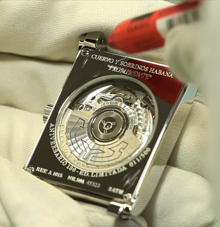 CUERVO Y SOBRINOS”库尔沃钟表博物馆 时至今天,库尔沃依然保存位于哈瓦那“金砣大道”上的库尔沃钟表博物馆,既热情又慵懒的前厅摆放着复古皮质大座椅、大笨钟,老唱片,莫吉托调酒台,……既然来到这里,就要喝一杯自己专属的莫吉托,尝过之后才懂得何谓的王家卫所述的醉生梦死。 库尔沃-光彩系列2414.1CC机械男表